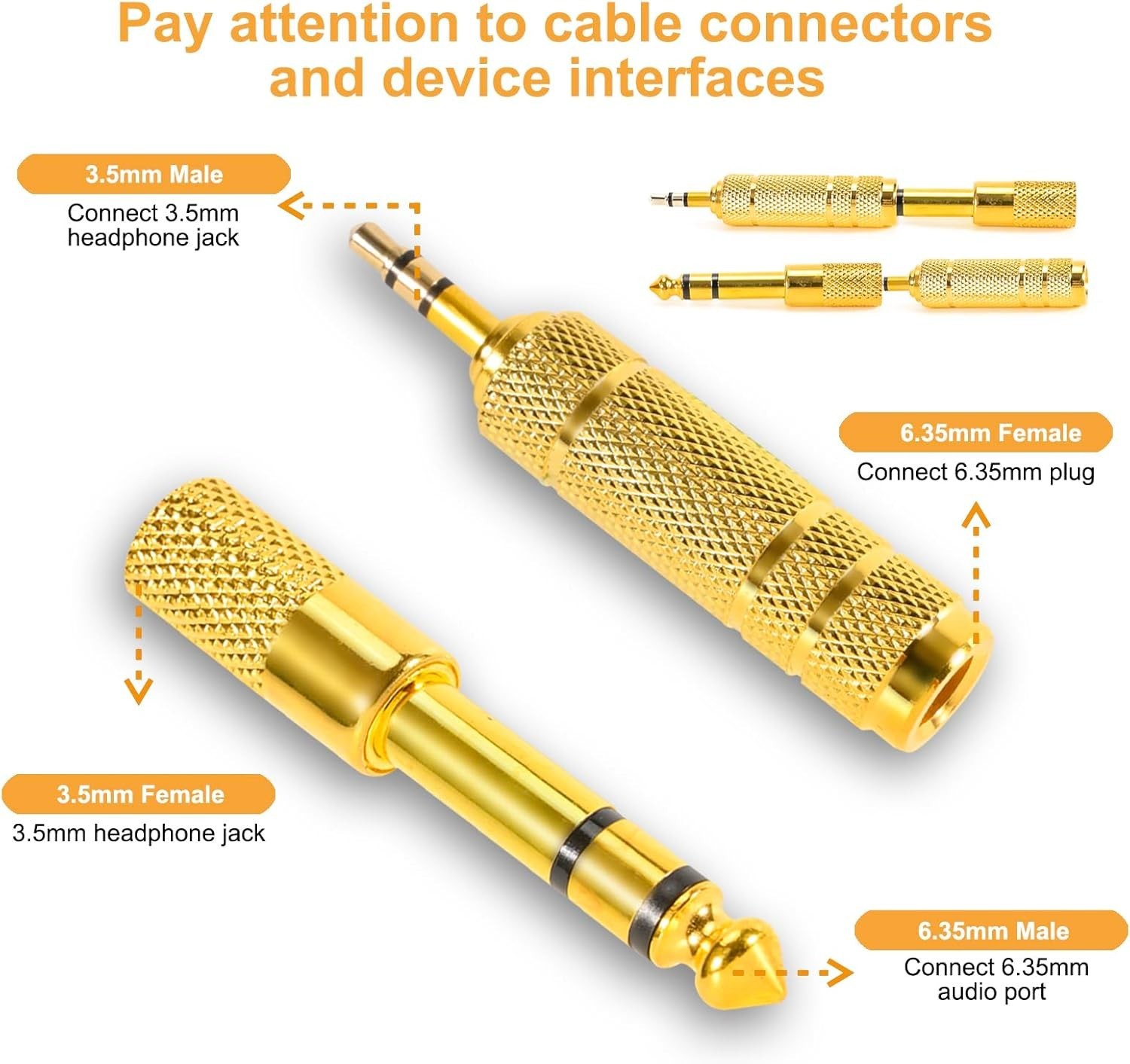 4 Pack Headphone Jack Adapter - 3.5mm 1/8 inch Male to 6.35mm 1/4 inch Fema