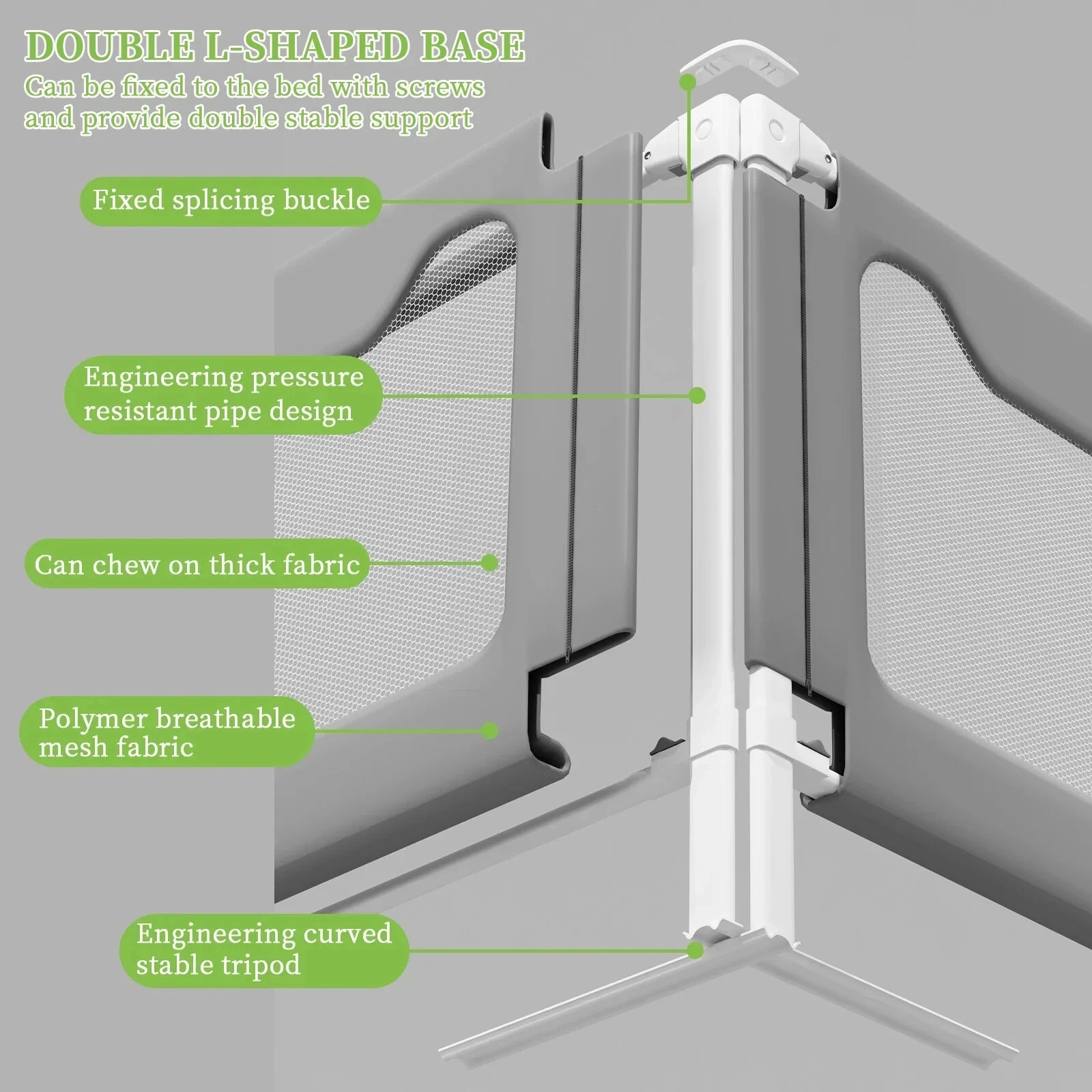 как выглядит Toddler Bed Rail 2 meters Gray w/Double Child Lock, Adjustable Height 28.3" фото
