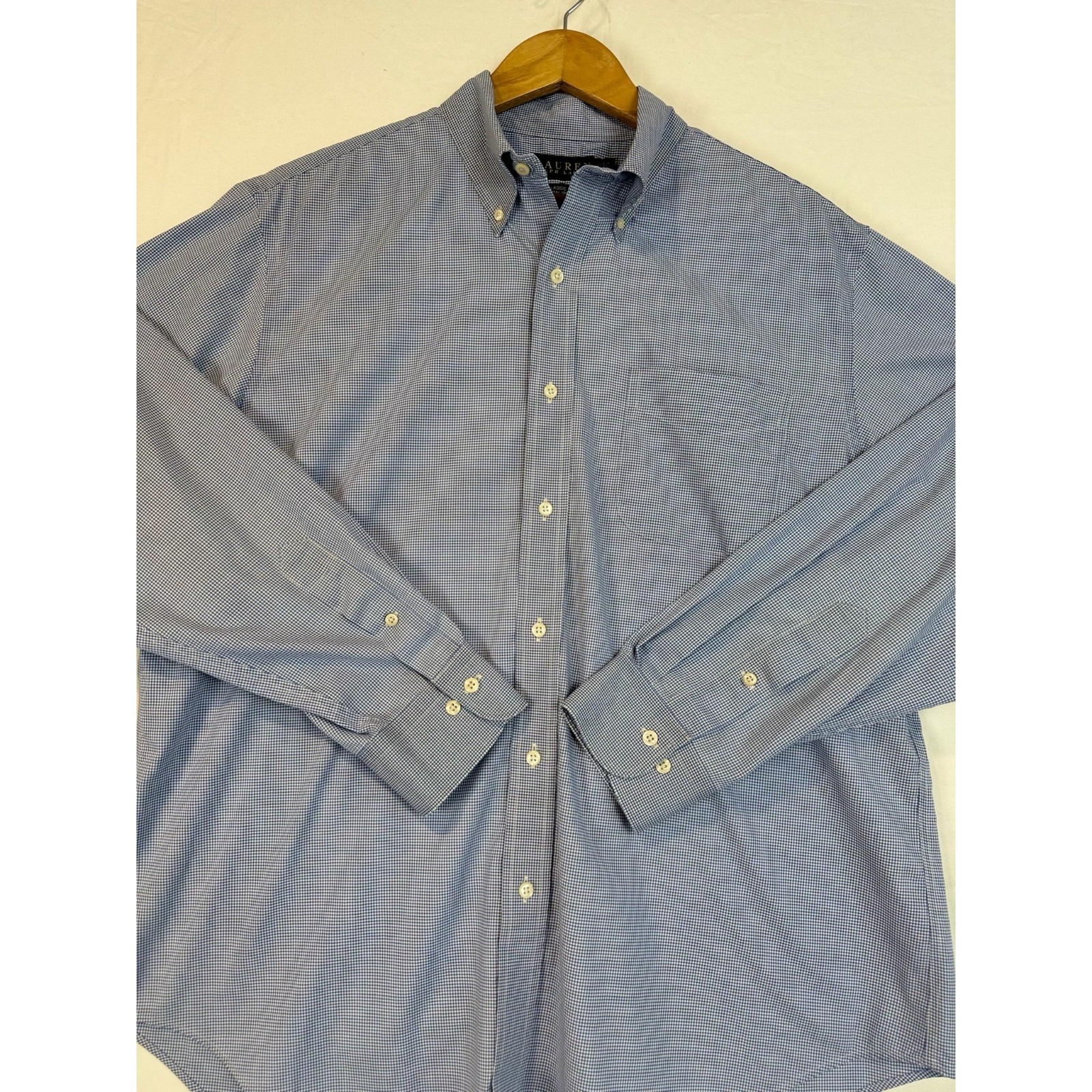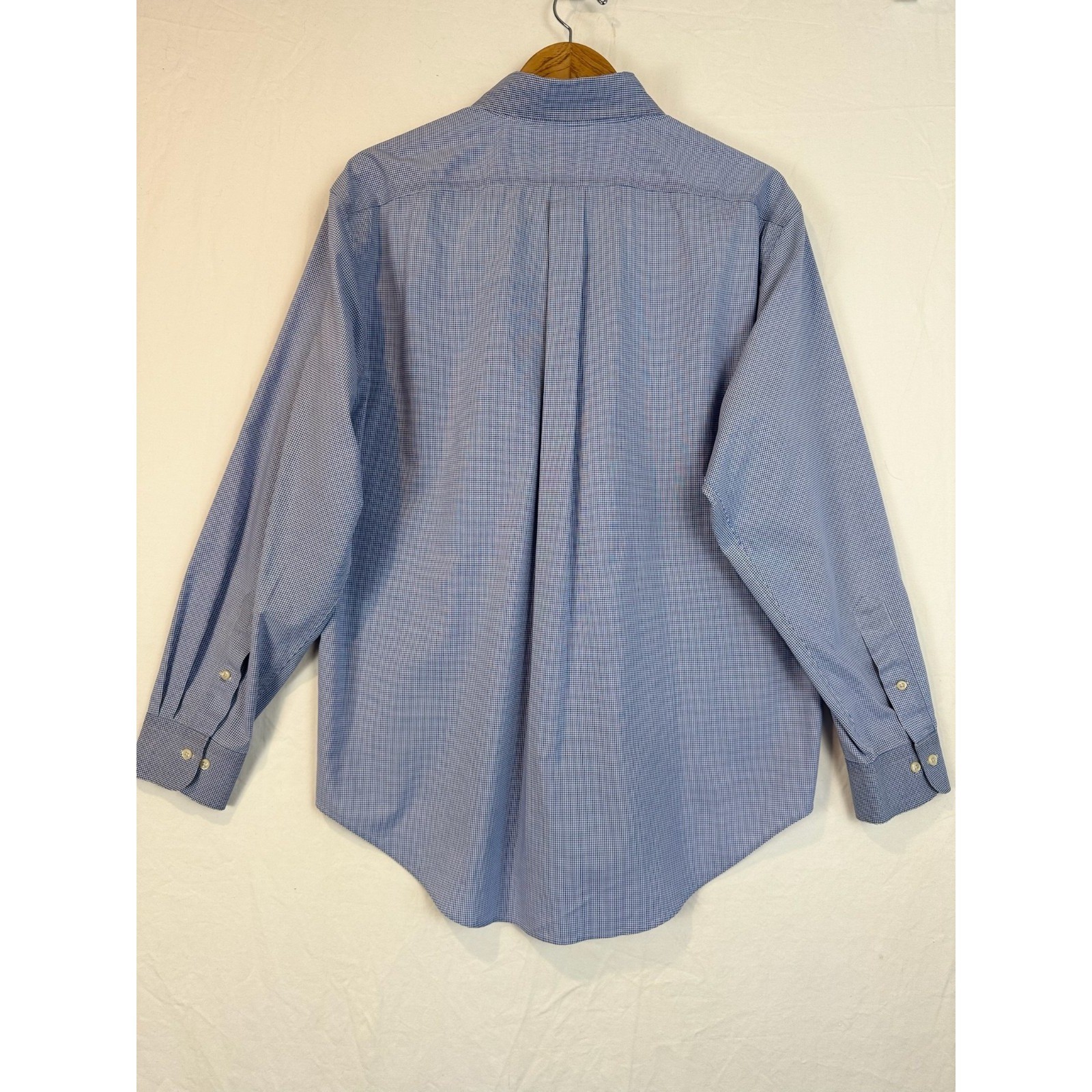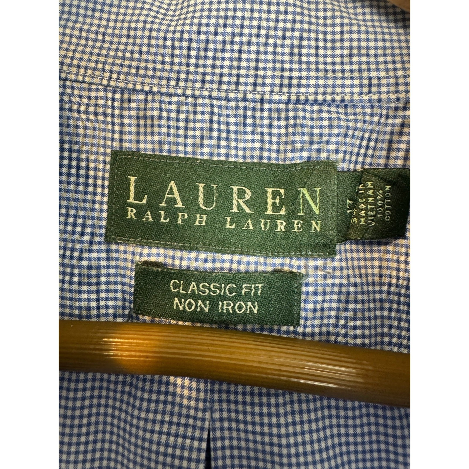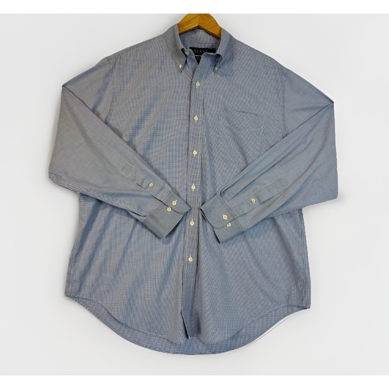Ralph Lauren Classic Fit Men's Dress Shirt Blue White Gingham Non Iron 17 34/35
