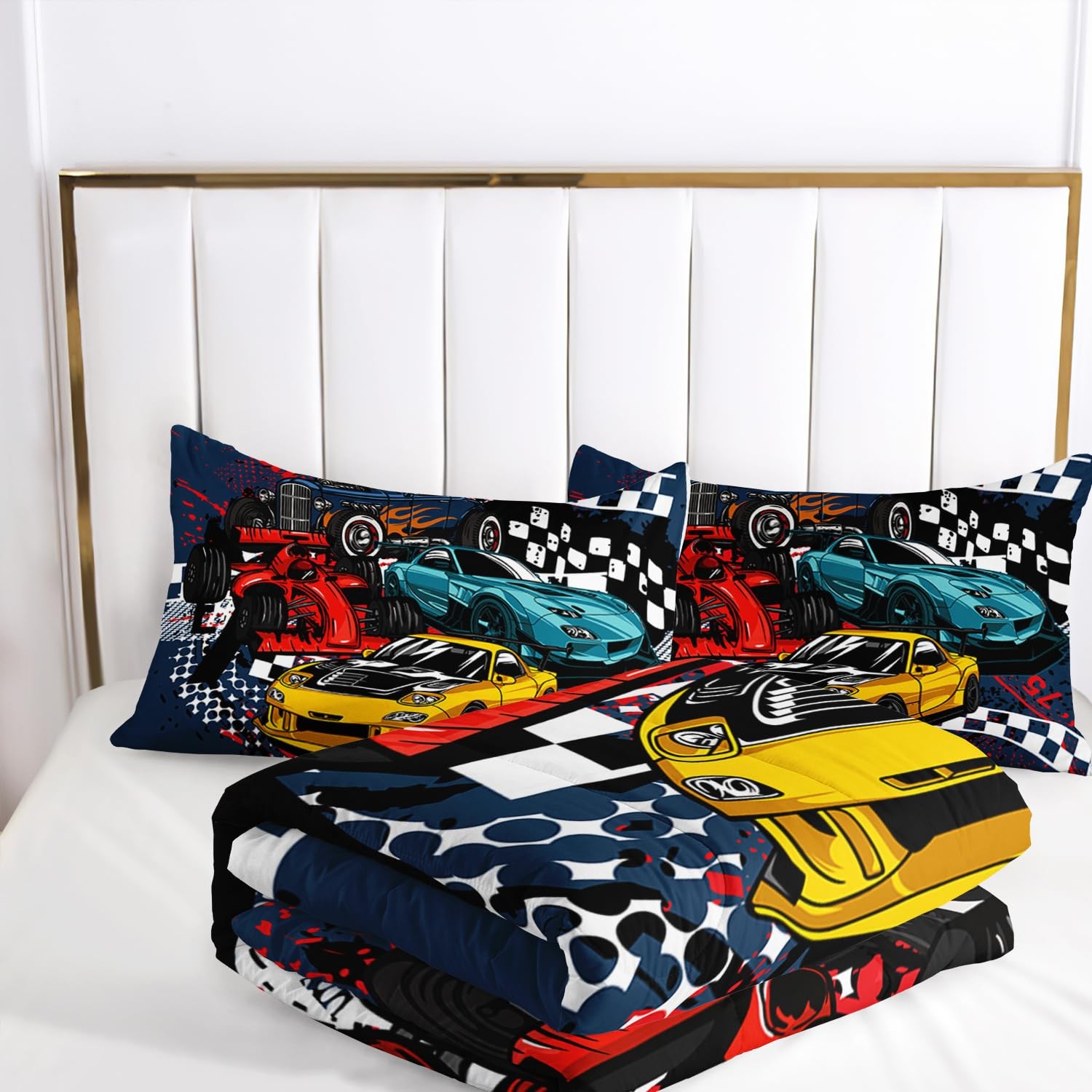 как выглядит Racing Car Comforter Set Queen Size, Cool Speed Race Car Bedding Sets for Kid... фото