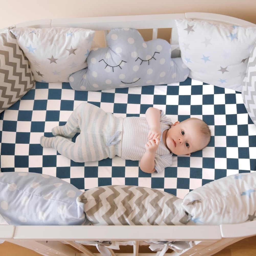 4 Pack Checkered Bassinet Sheets Neutral Breathable Fitted Baby Sheets Nurser...