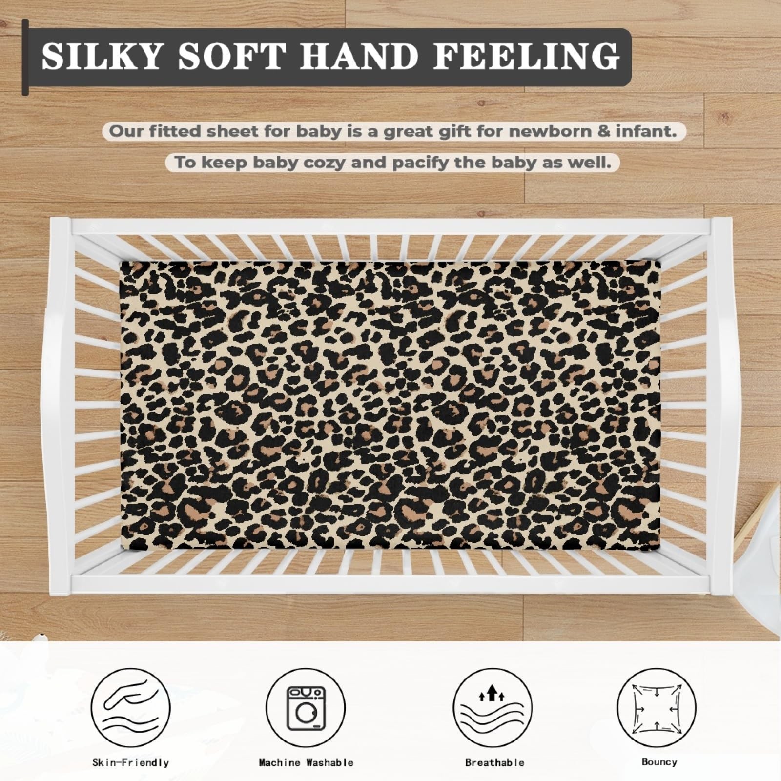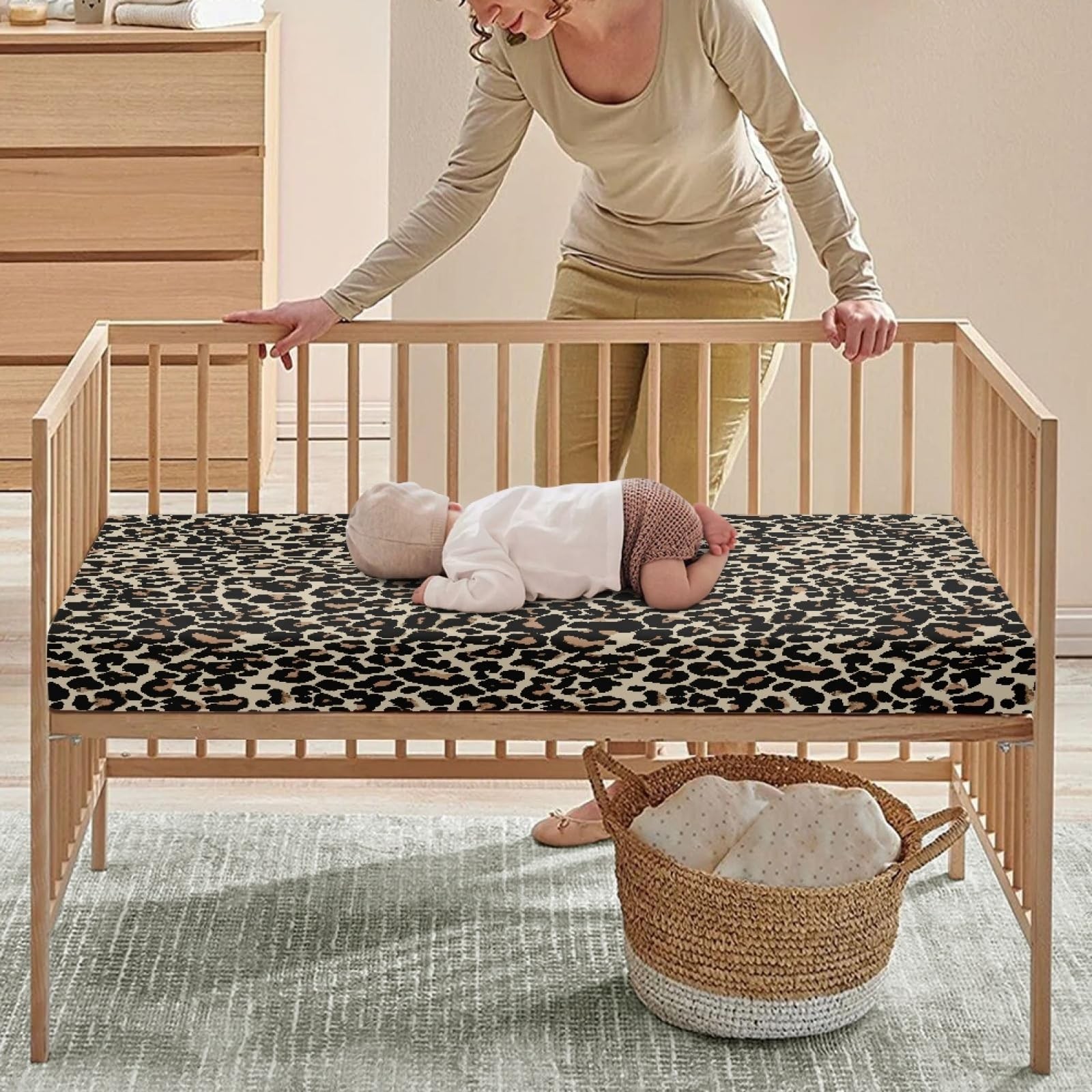 Brown Leopard Baby Crib Sheets for Boys Girls Animal Print Fitted Crib for St...