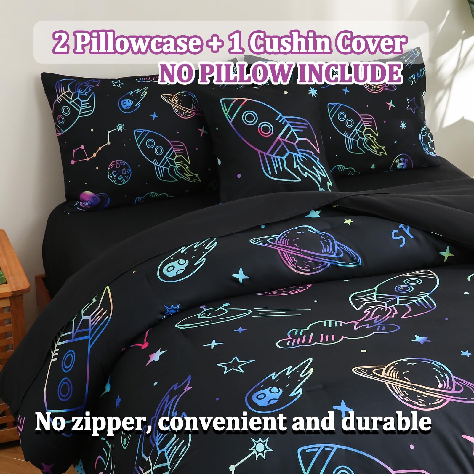 6 Pcs Bed in A Bag Twin Comforter Set for Boys,Rocket Comforter Set,Space Bed...
