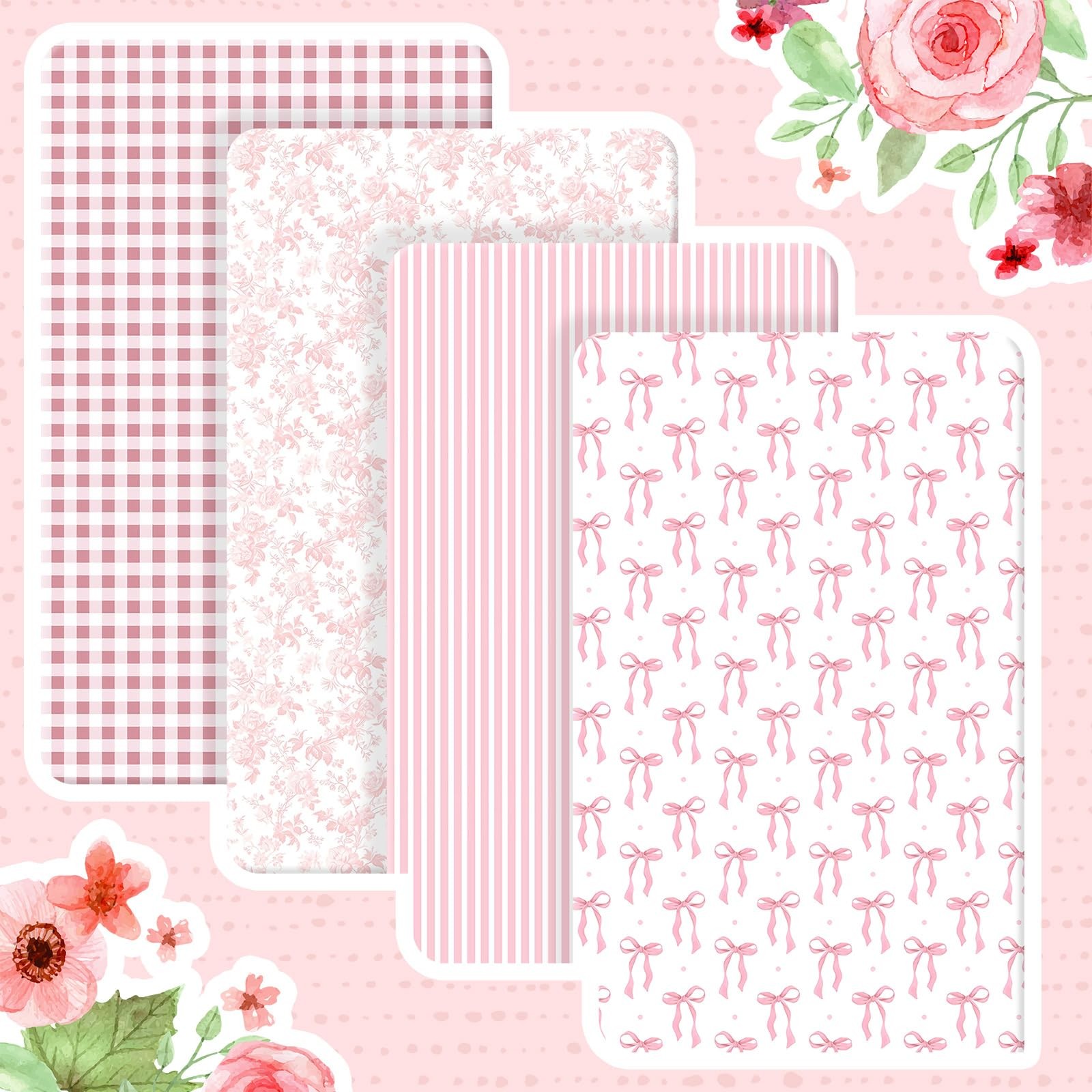 4 Pack Crib Sheets Girl Soft Baby Bed Set 52'' x 28 Nursery Crib Sheets for ...