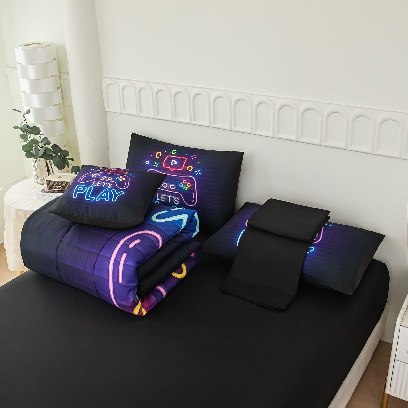 Gaming Bedding Sets for Boys,Full Size Comforter Sets for Boys,6PCS Gaming Be...