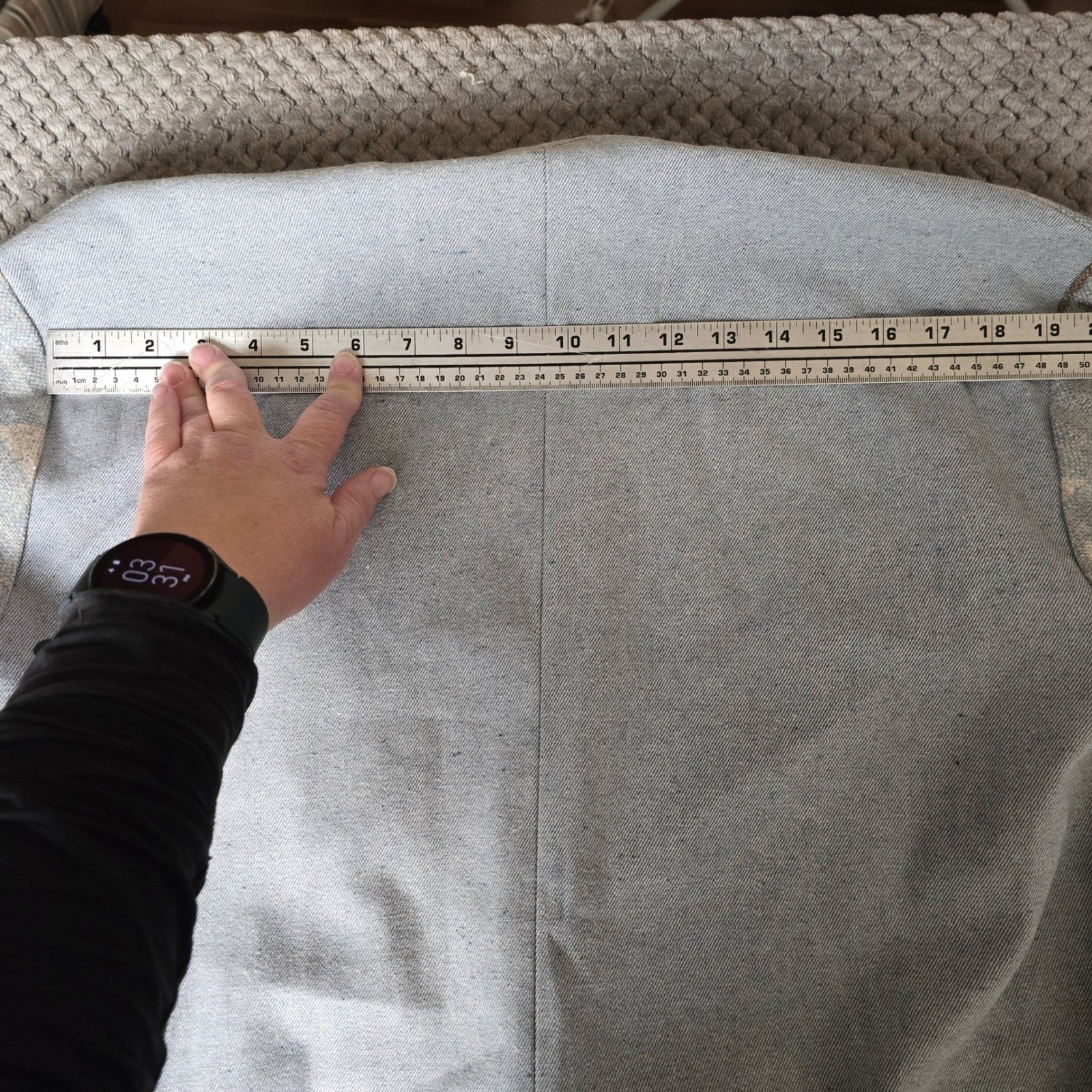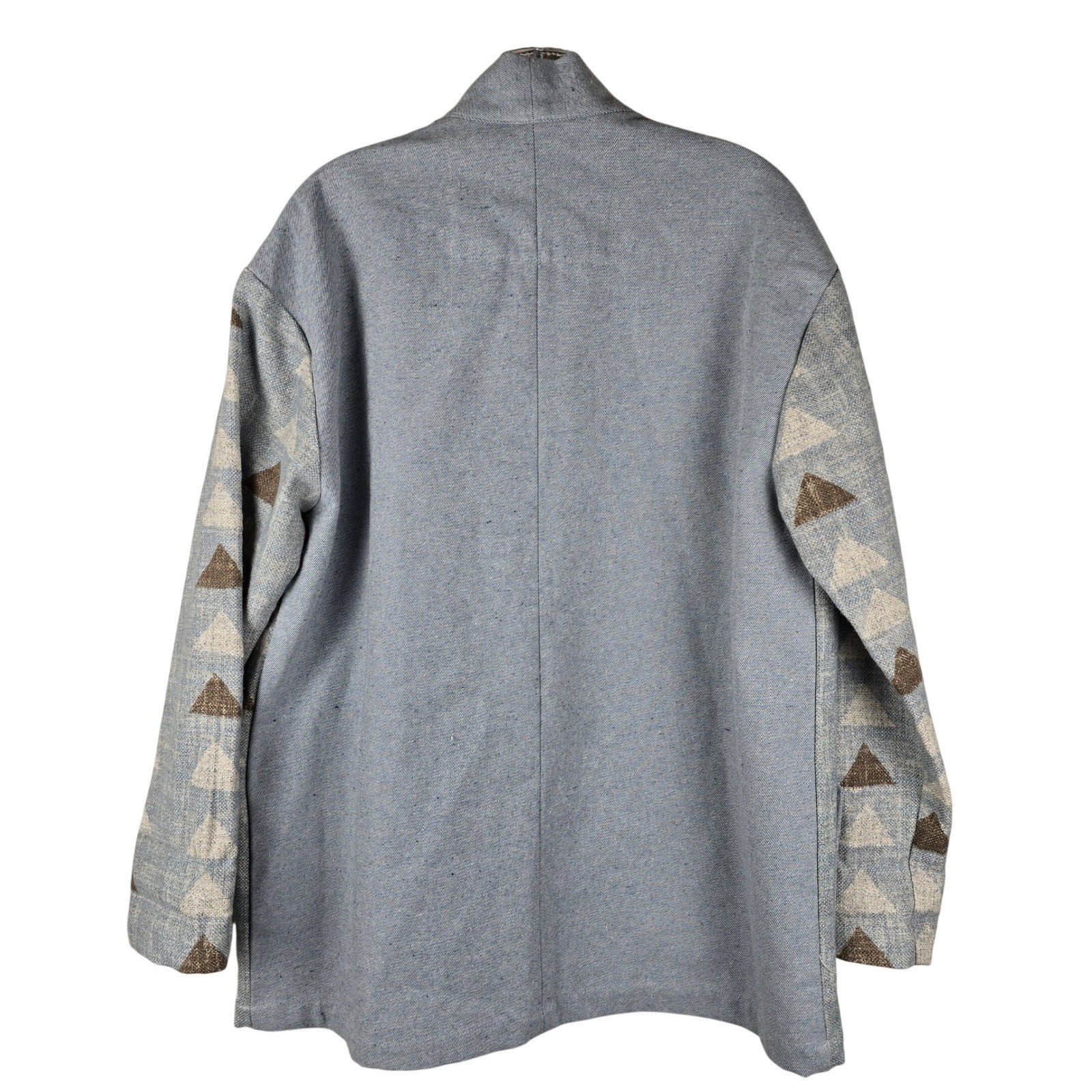 как выглядит 8 AM Fashion 100 Linen Jacket Small Blue Geometric Triangle Open Front USA фото