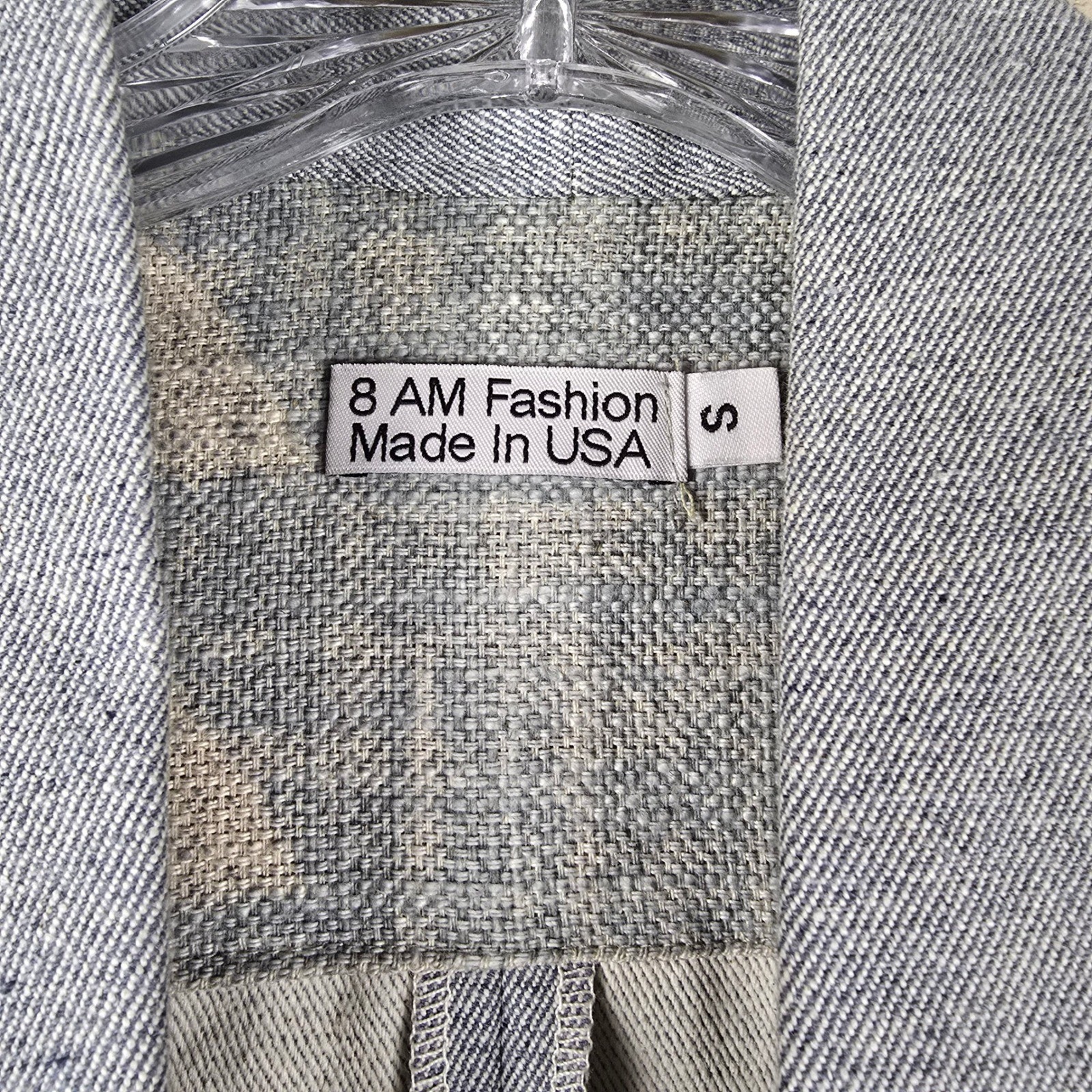 8 AM Fashion 100 Linen Jacket Small Blue Geometric Triangle Open Front USA