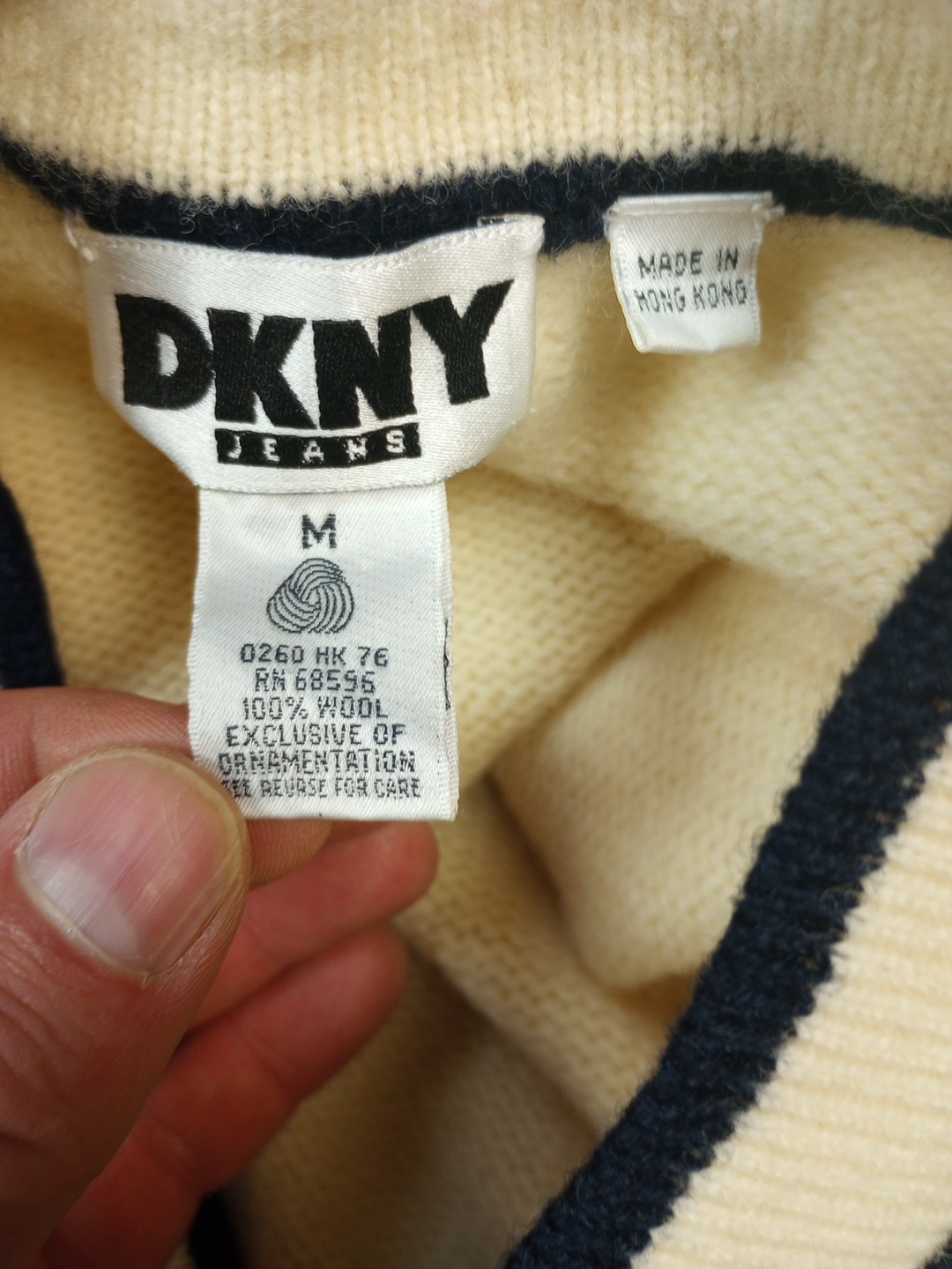 DKNY JEANS Letterman Varsity Cardigan Sweater Off White 100 Wool Size Medium