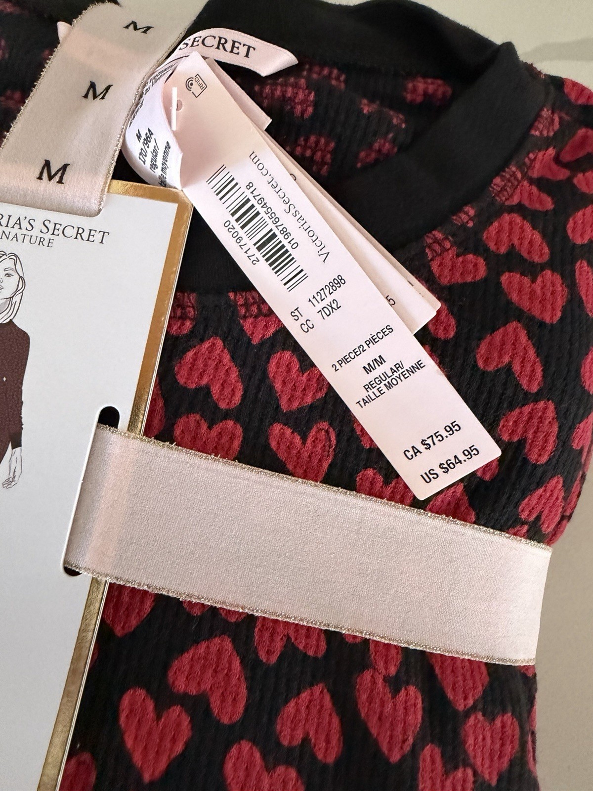 как выглядит Victorias Secret Womens Henley Long Pajama Set Red Hearts Print Medium NWT фото
