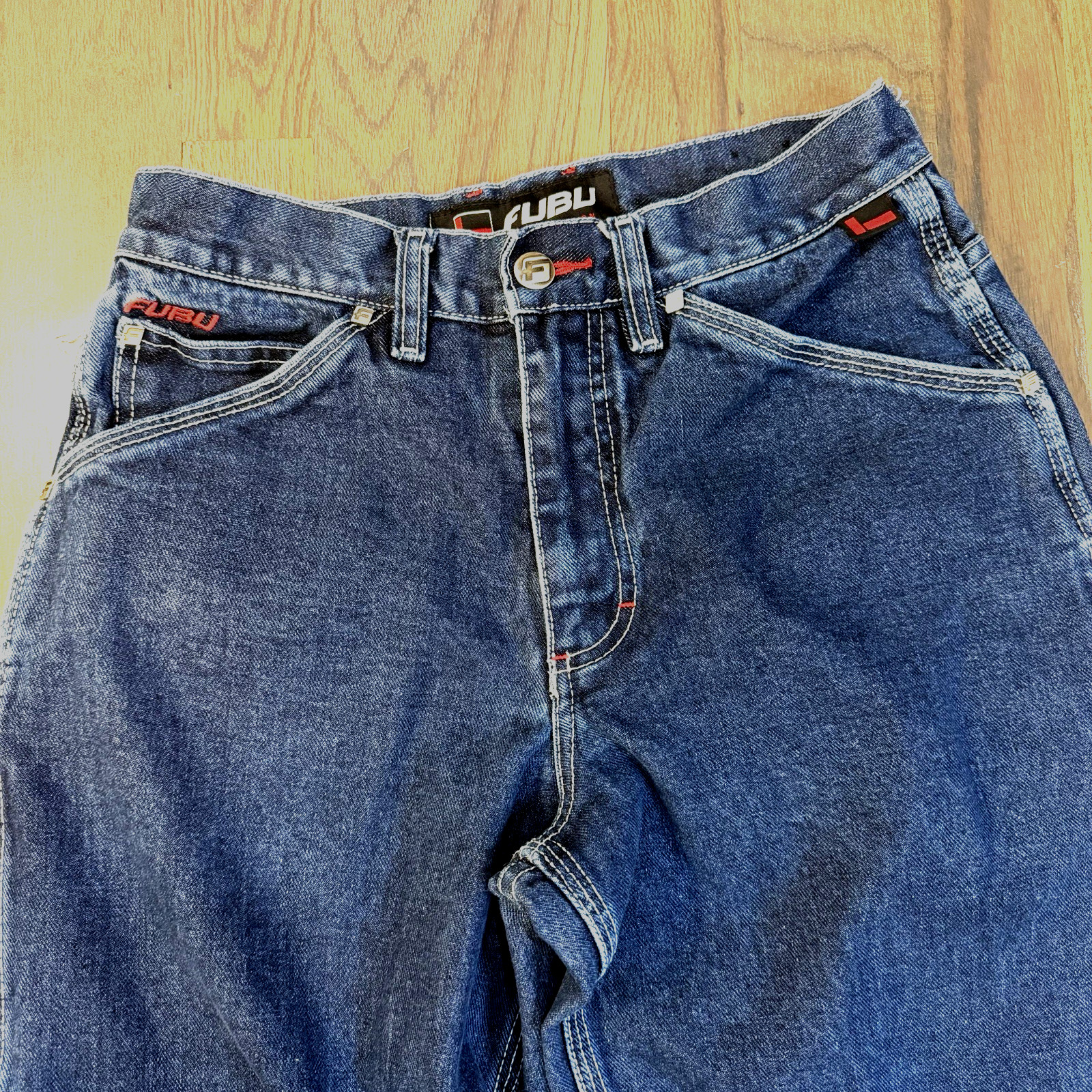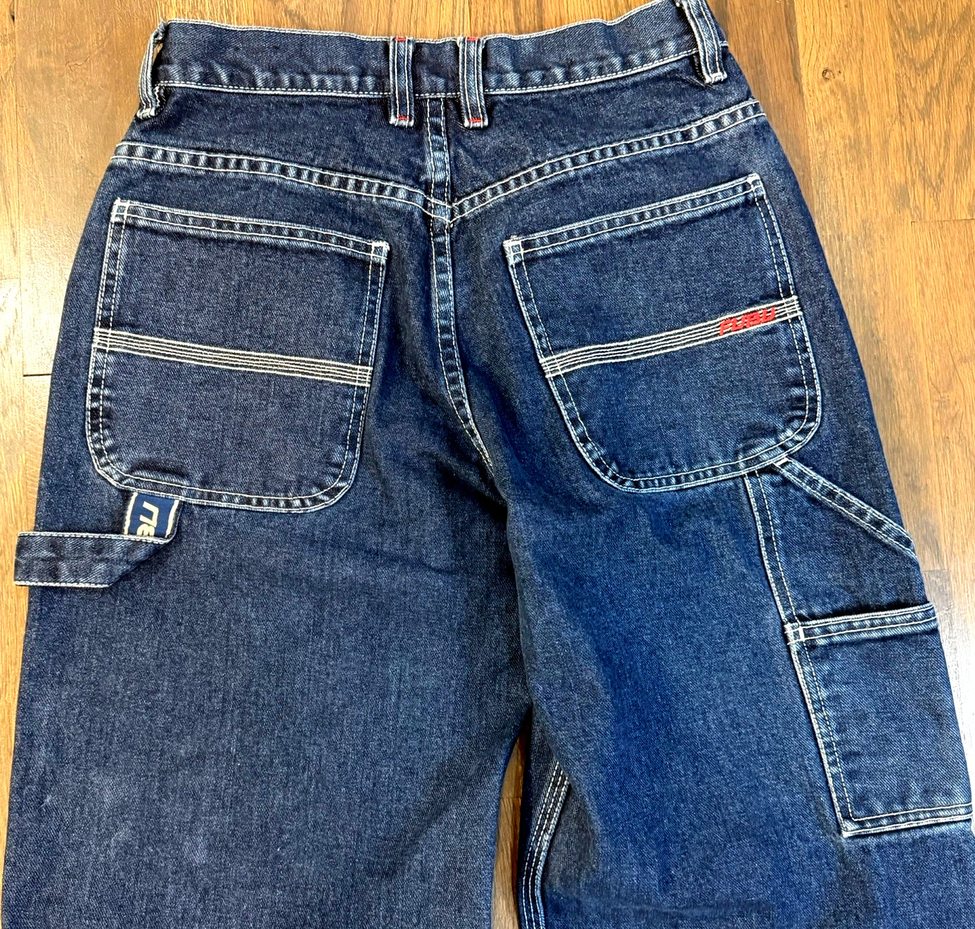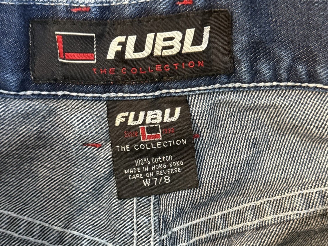VTG FUBU The Collection Carpenter Jeans Dark Wash Denim Y2K Baggy Women s 7/8
