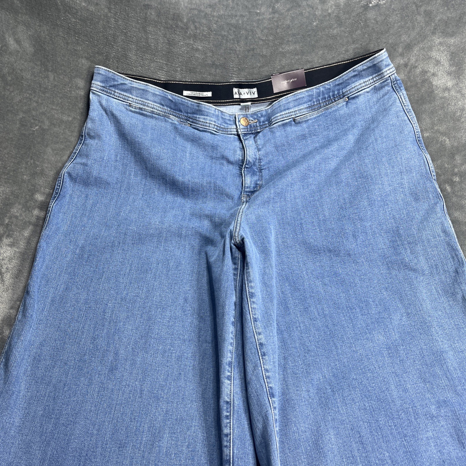 Ava Viv Jeans Womens 24 Wide Leg Stretch High Rise Comfort Light Wash Denim NEW