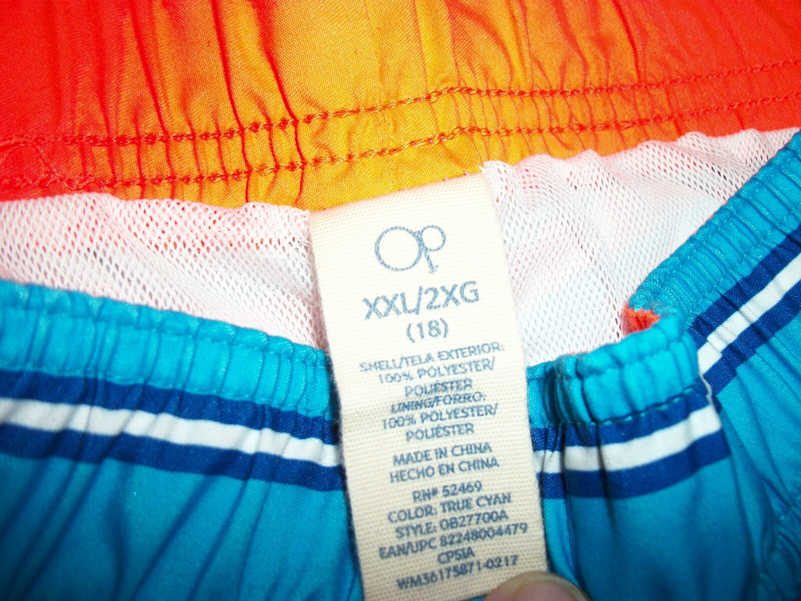 как выглядит OP Striped Swim Trunks Board Shorts Blue Striped UPF 50 Size XXL фото
