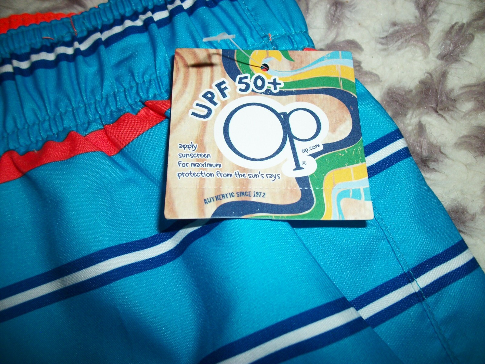 OP Striped Swim Trunks Board Shorts Blue Striped UPF 50 Size XXL