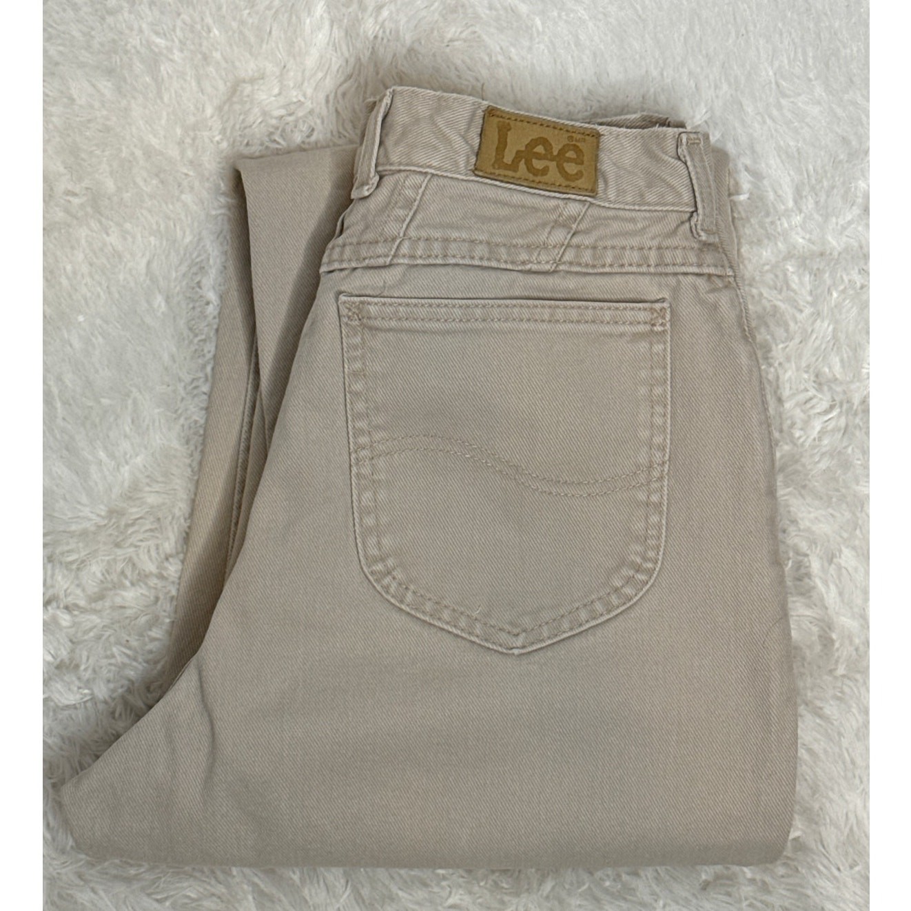 как выглядит Late 1980s Early 1990s Lee High-Waist Cream Beige Cotton Mom Jeans 28" waist фото