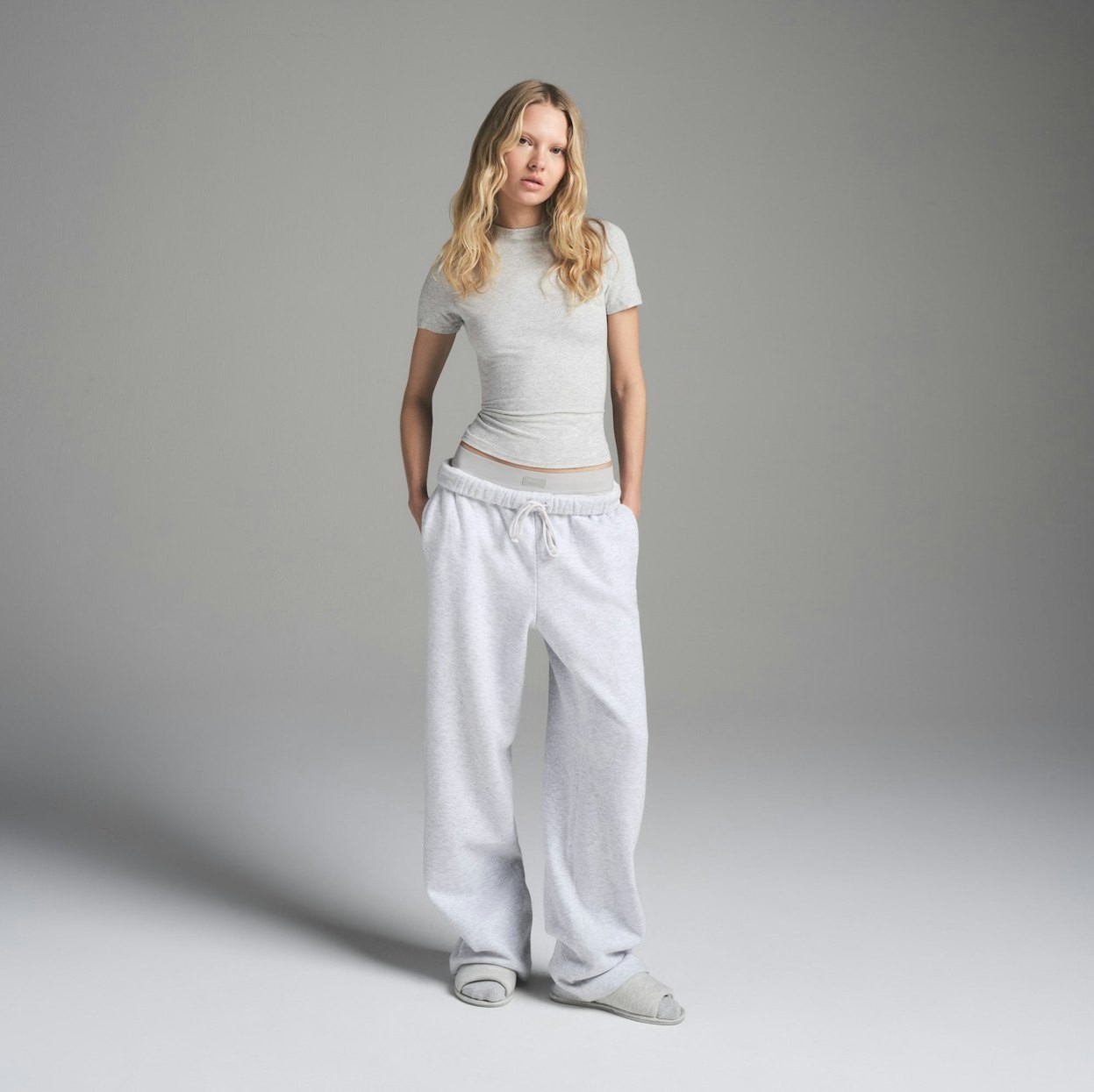 SKIMS Cotton Fleece Classic Straight Leg Pants Light Heather Grey XL NWT 88