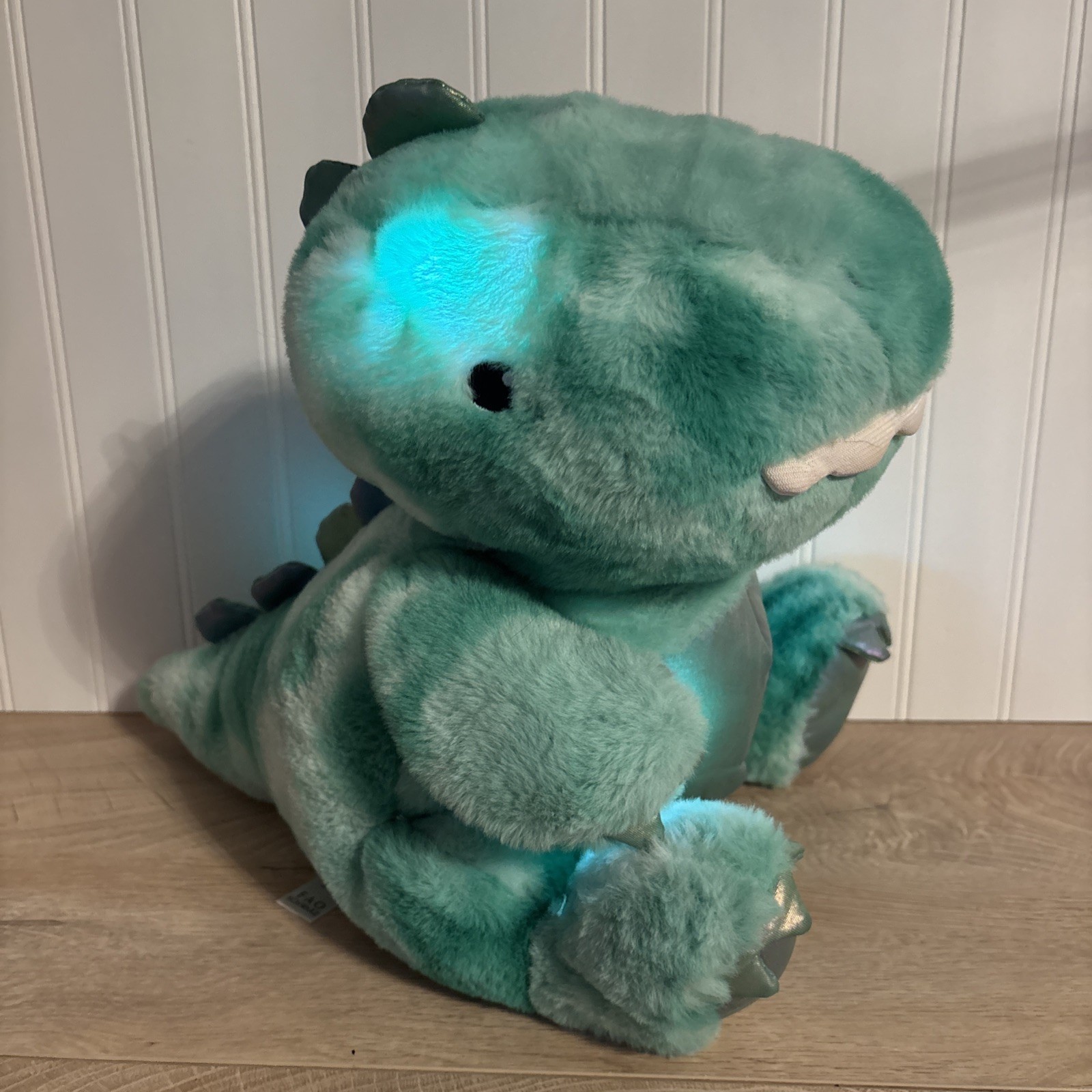 FAO Schwarz Glow Brights Toy Plush LED Sound Green Dinosaur 15 Stuffed Animal