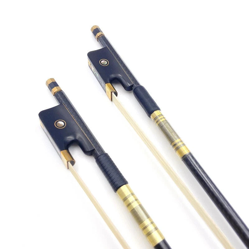 как выглядит 1pcs Plaid carbon fiber Viola Bow, Gold Mounted, Good white hairs . strong фото