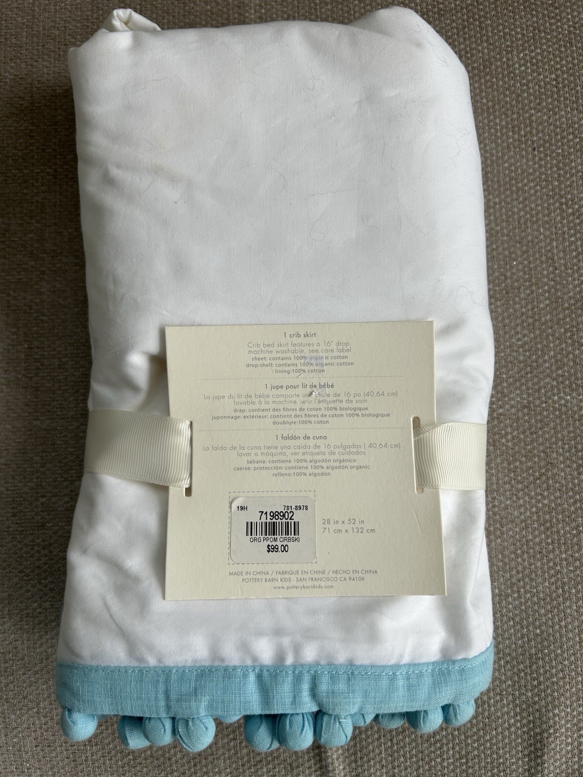как выглядит Pottery Barn Baby Organic Pom Pom Lined Crib Skirt 28 X 52  Organic Cotton фото