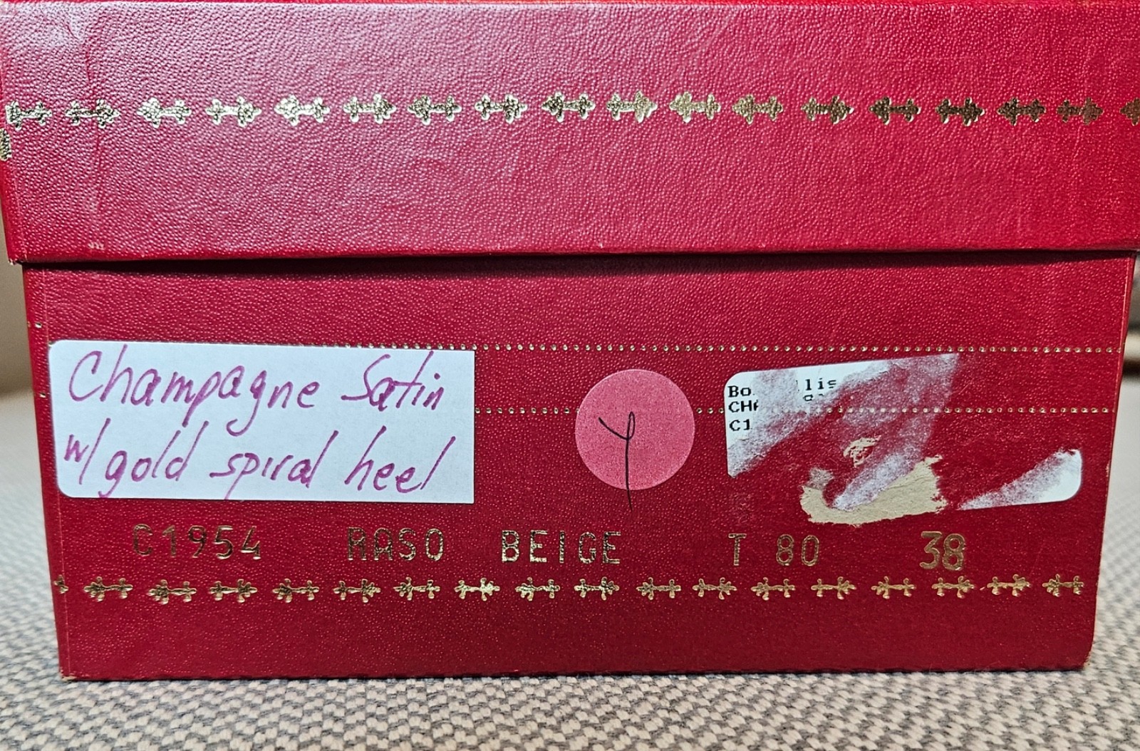 Rene Caovilla rare champagne satin sandals, gold spiral heel, IT38 New with box