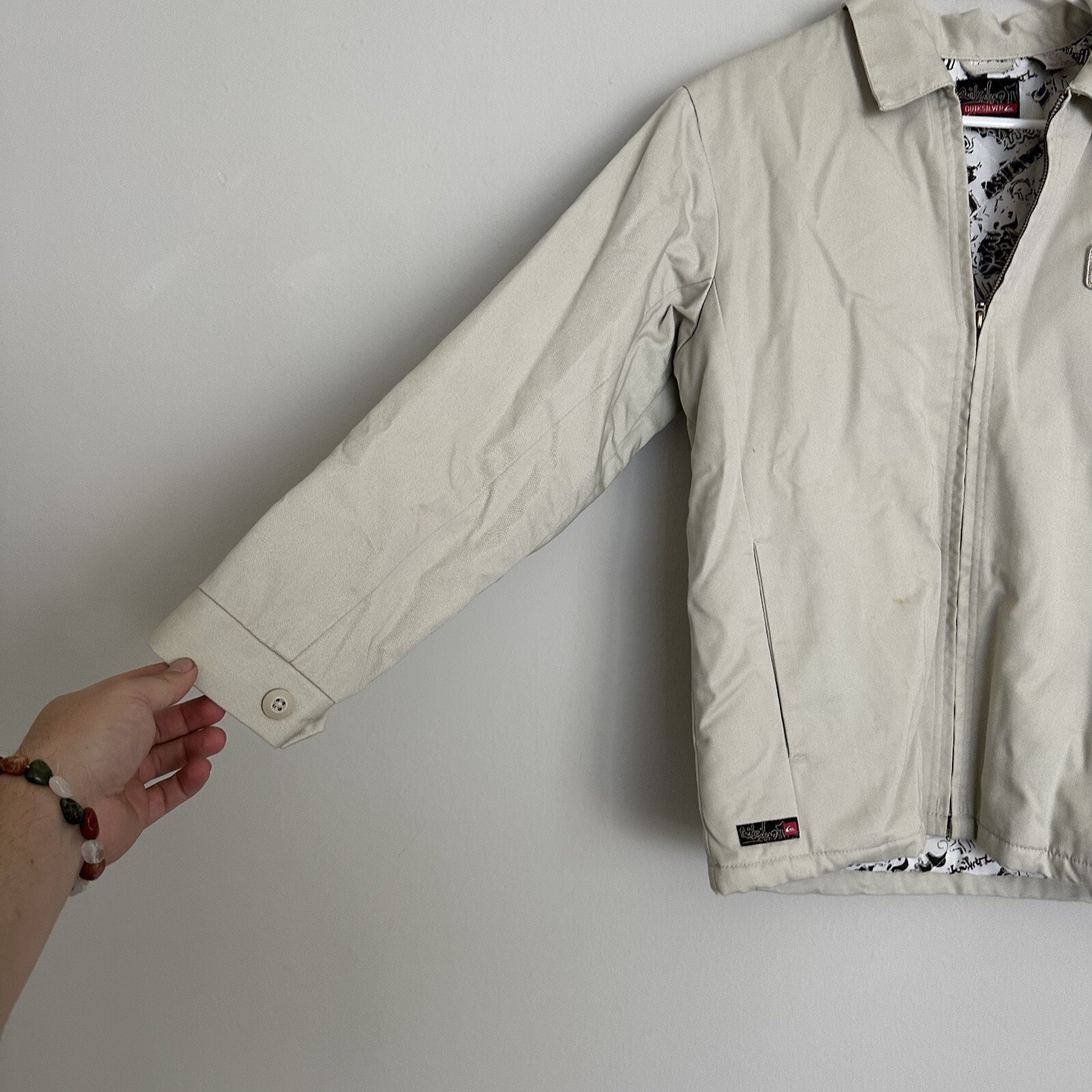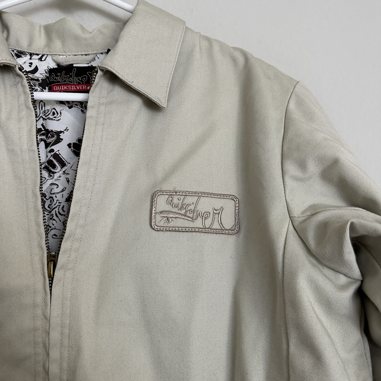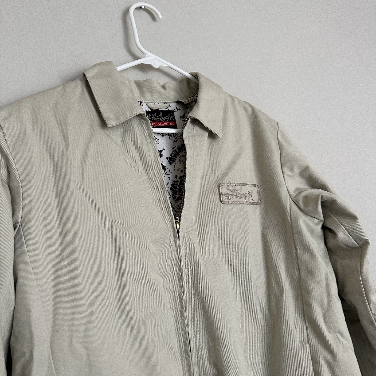 как выглядит Quicksilver Beige Full Zip Jacket Boys M Pockets Polyester Slightly Stained фото