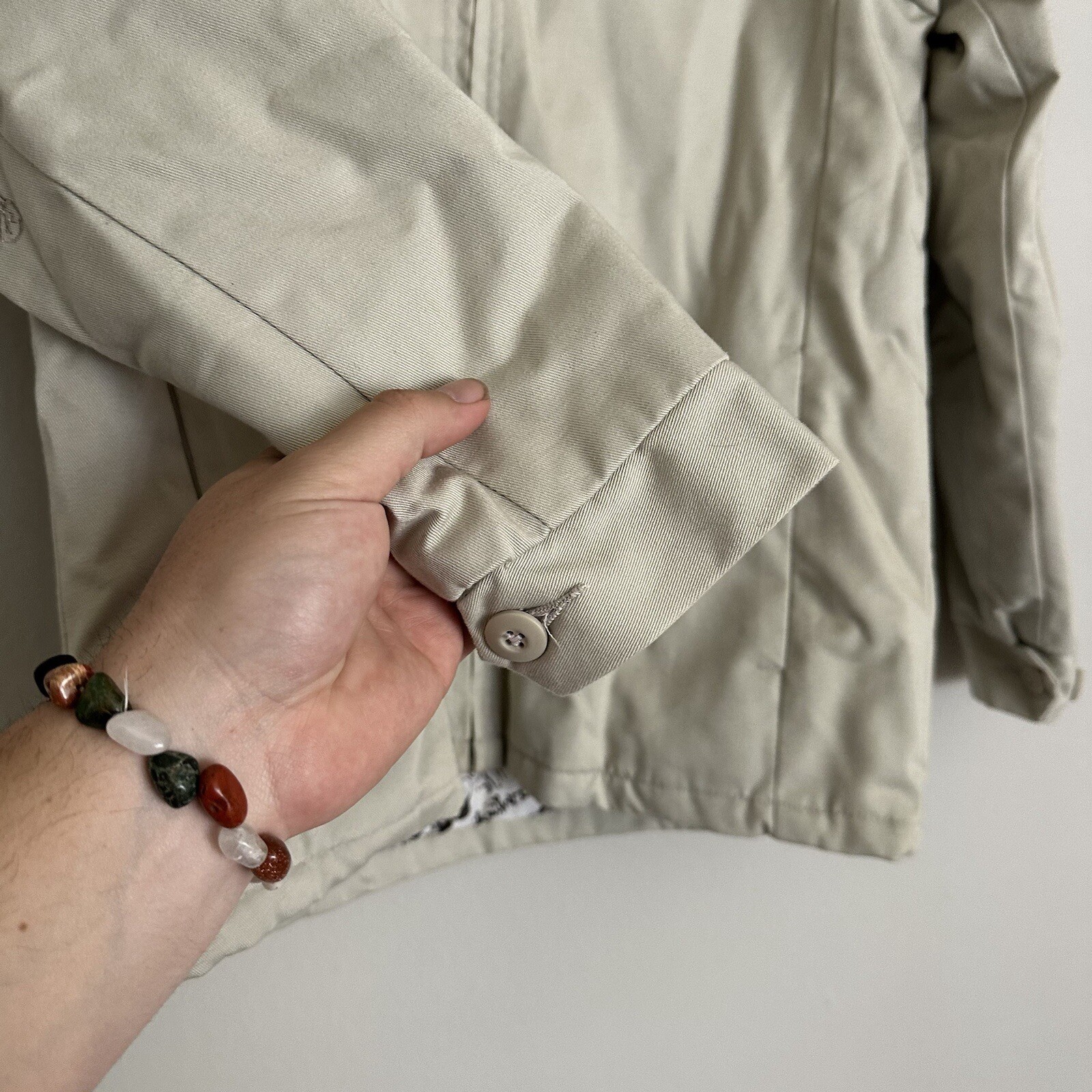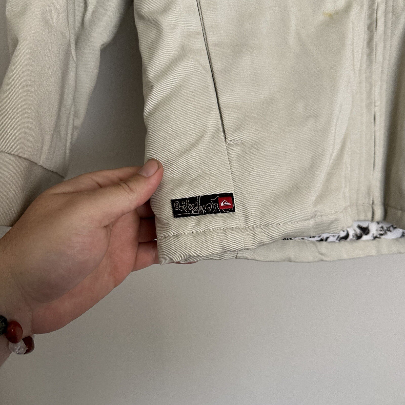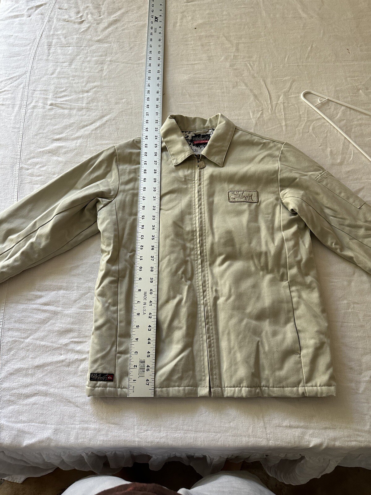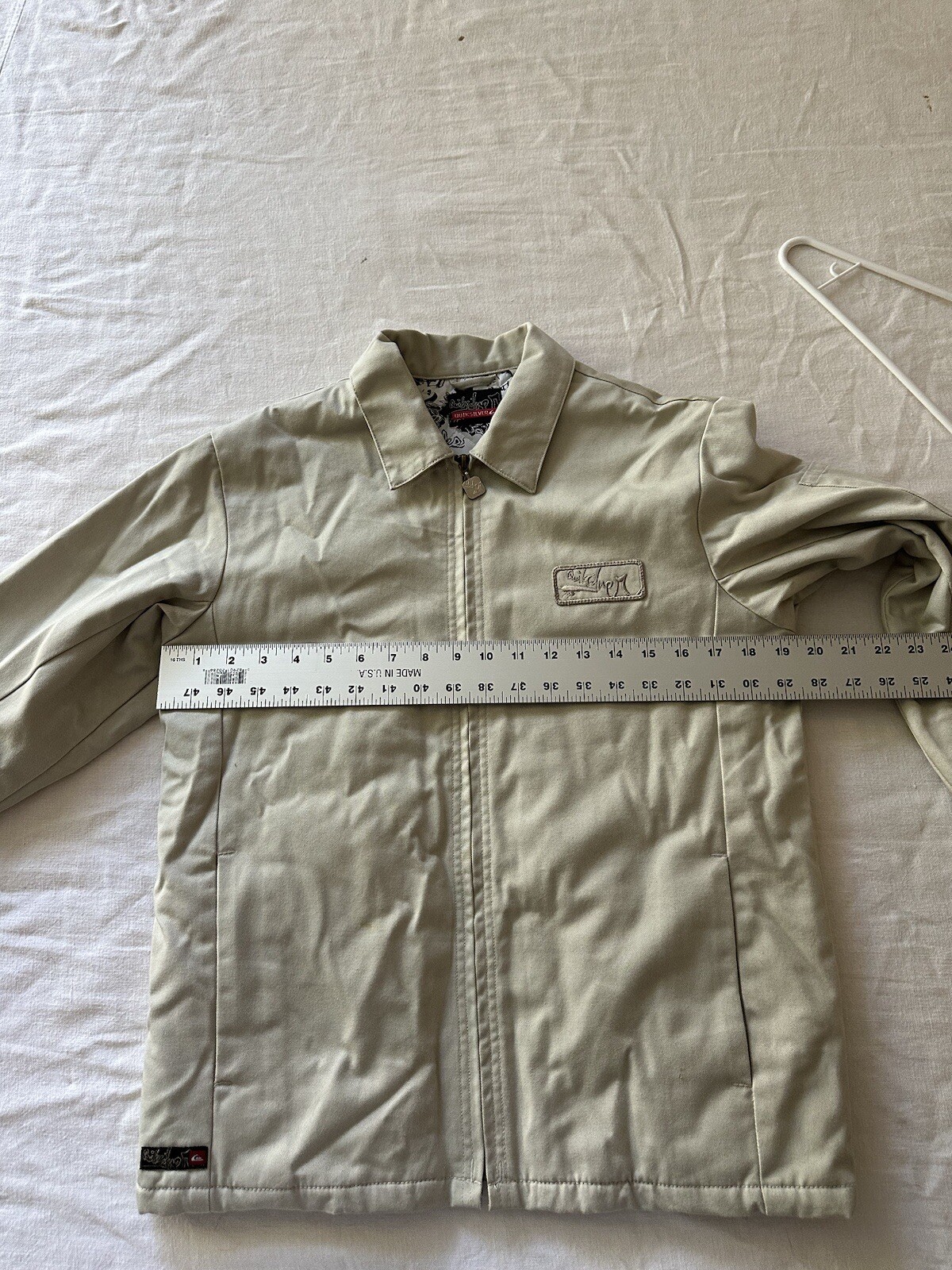 как выглядит Quicksilver Beige Full Zip Jacket Boys M Pockets Polyester Slightly Stained фото