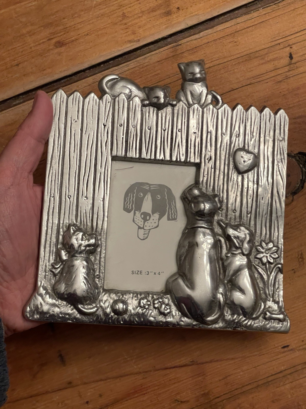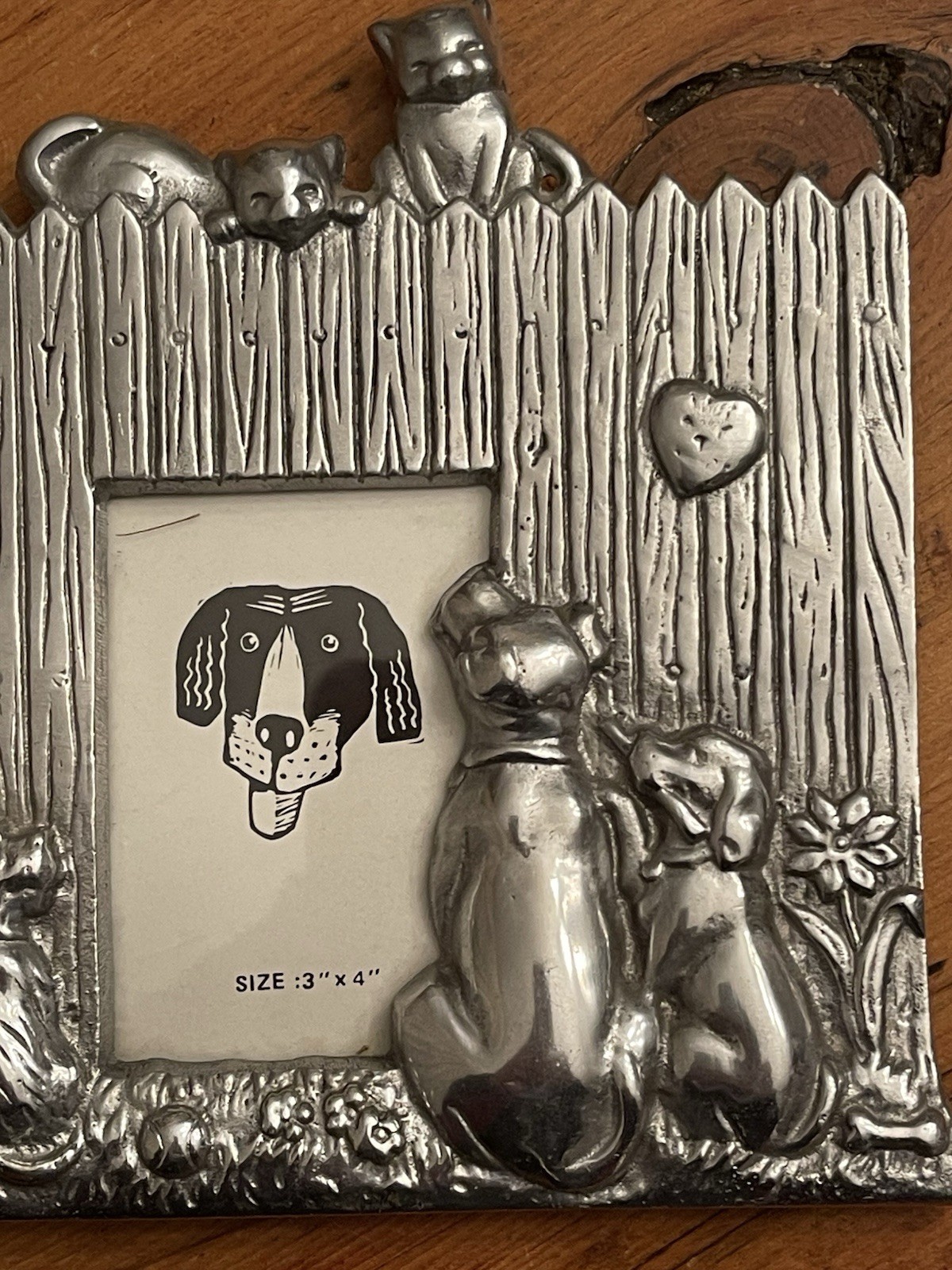 • Heavy Pewter/silver-tone metal pet picture frame Dogs And Cats 3 By 4 Open