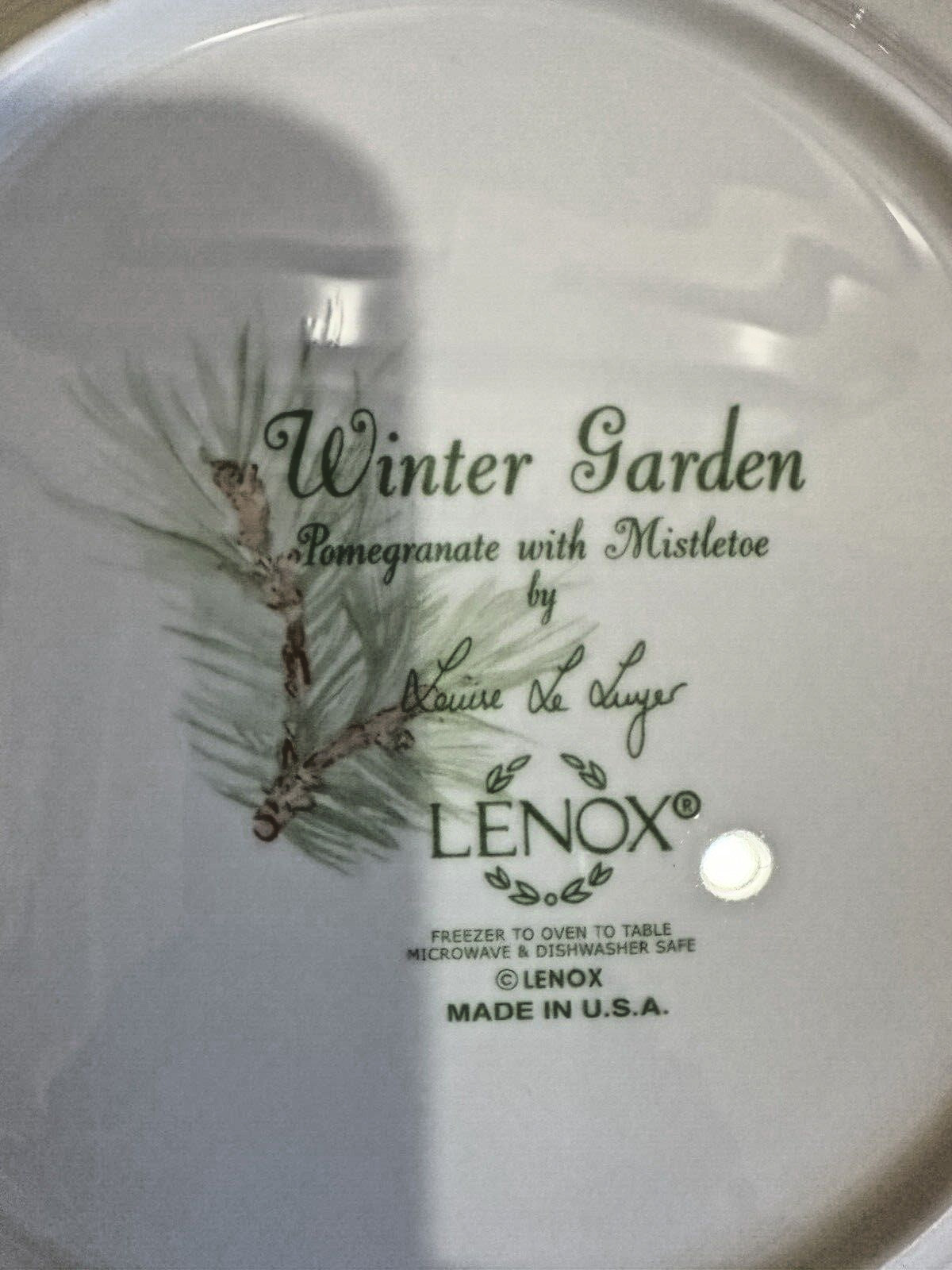 как выглядит LENOX Winter Garden Pomegranate With Mistletoe Salad Plate 9 1/2" Set Of 4 New фото
