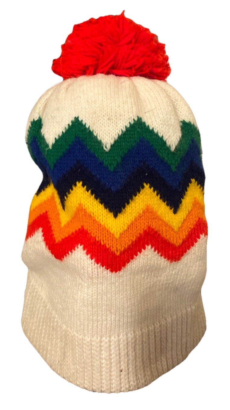 Vintage Wigwam Mills 100 Wool Ski Winter Gear Knit Beanie Hat Rainbow USA