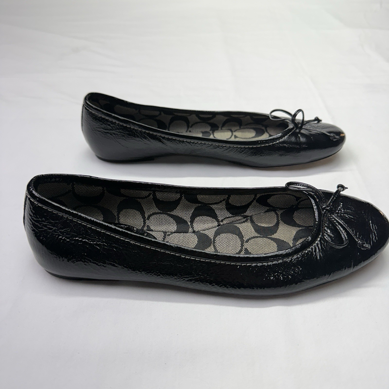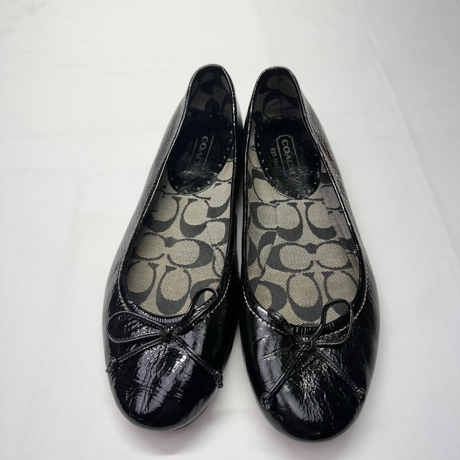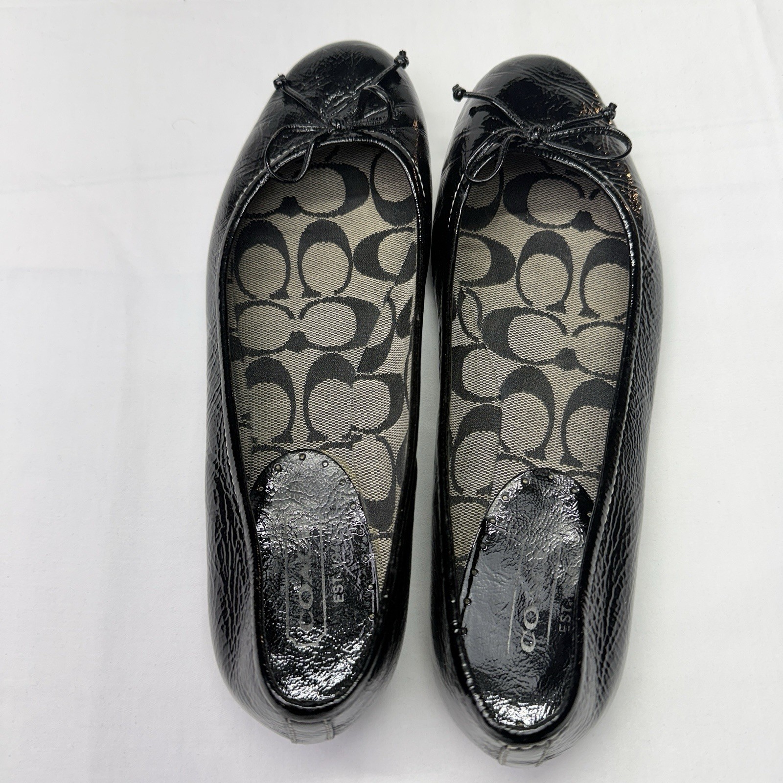 COACH Odella Black Patent Leather Ballet Flats Bow Womens Sz 8.5M