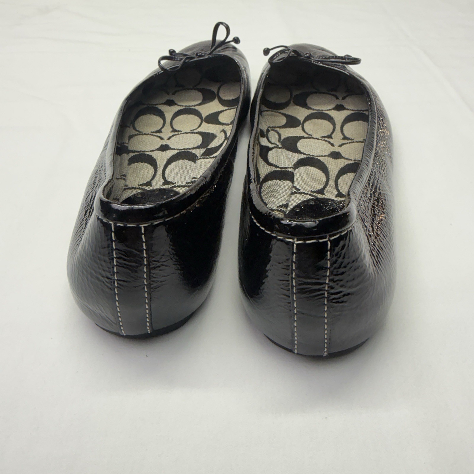 как выглядит COACH Odella Black Patent Leather Ballet Flats Bow Womens Sz 8.5M фото
