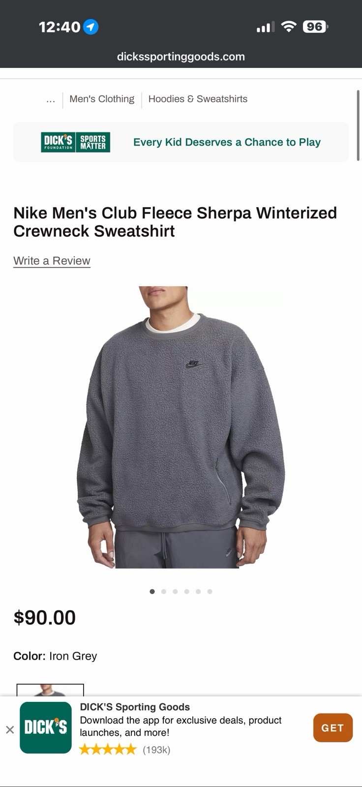 как выглядит Nike fleece Sherpa Winterized Crewneck Sweatshirt Men s M фото
