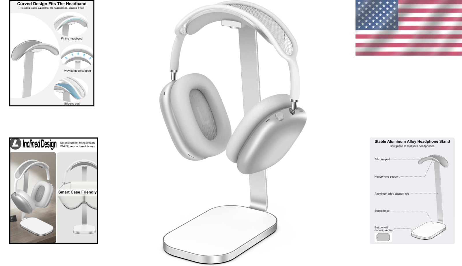 как выглядит Elegant Aluminum Headphone Stand - Heavy Base Silicone Support for AirPods Max фото