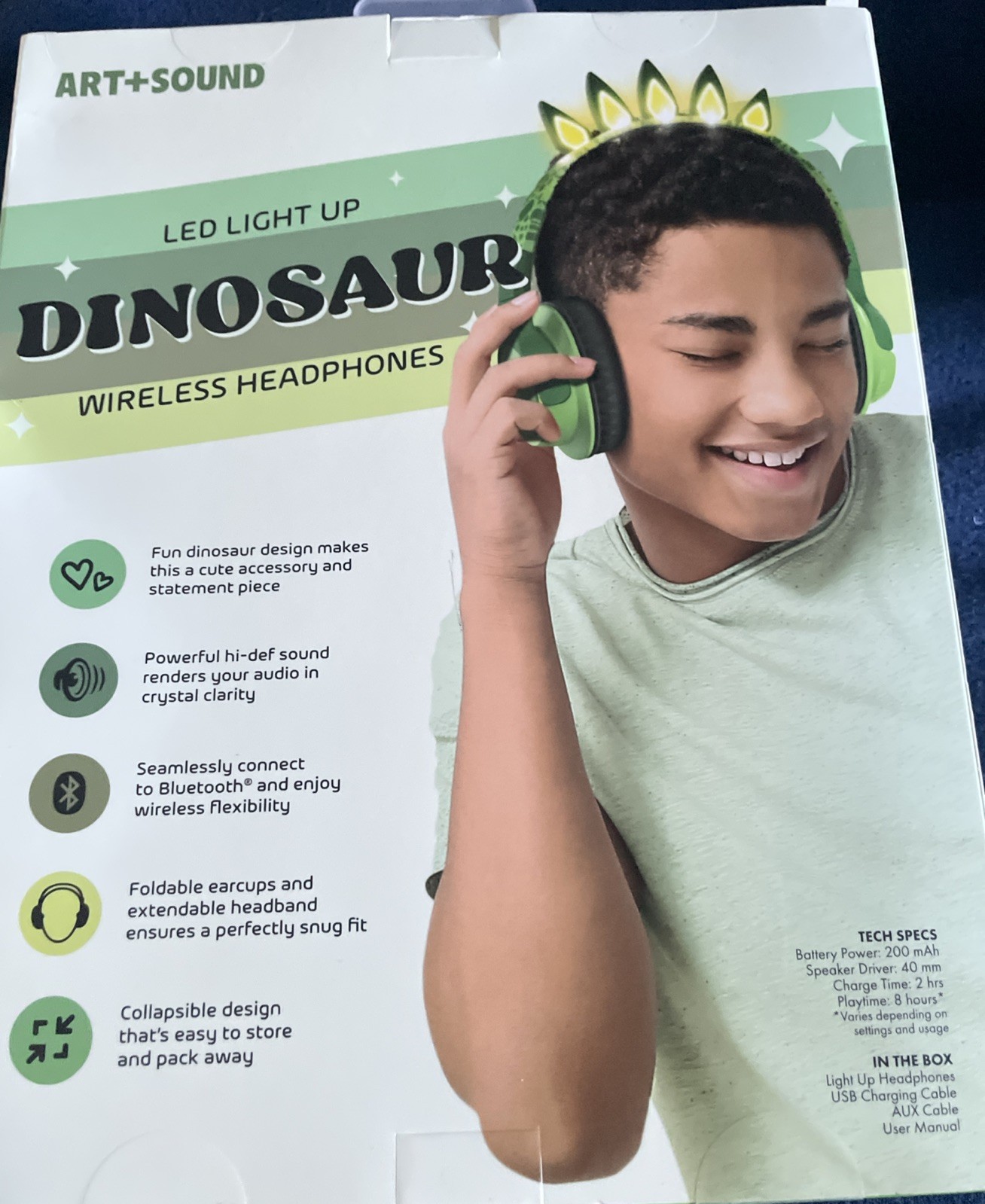 Art Sound LED Light Up Dinosaur Wireless Headphones