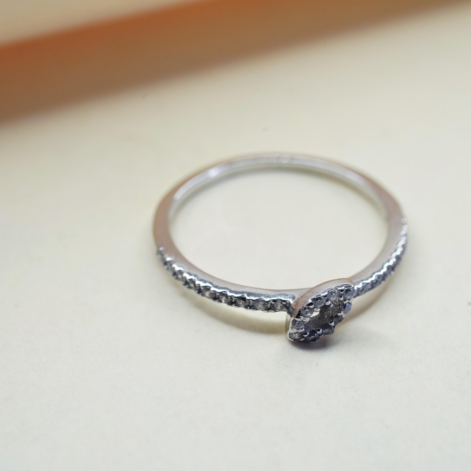 как выглядит Size 7, vintage sterling 925 silver ring with cluster CZ, stackable band фото
