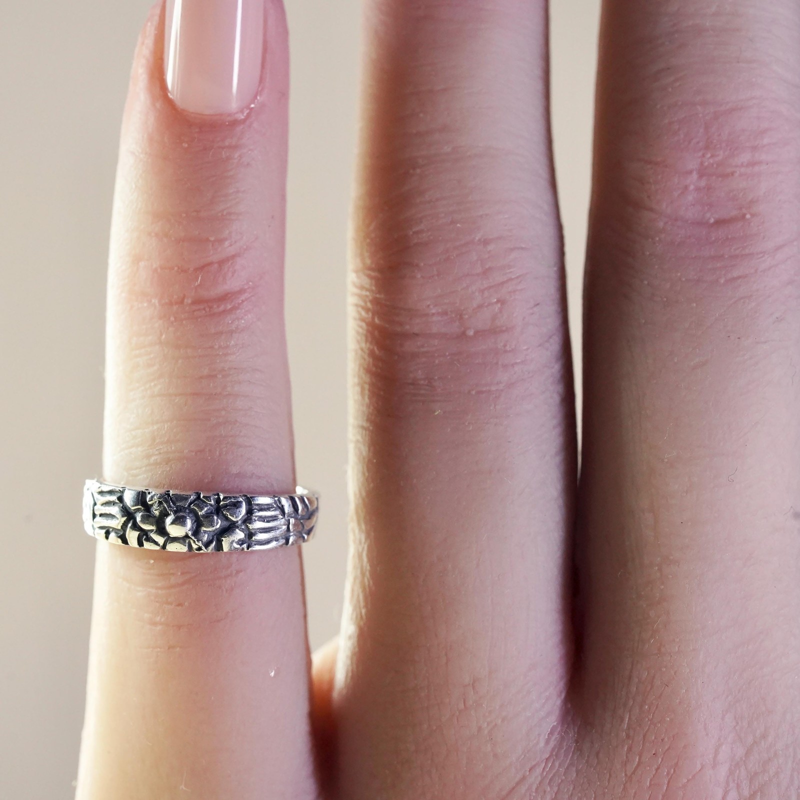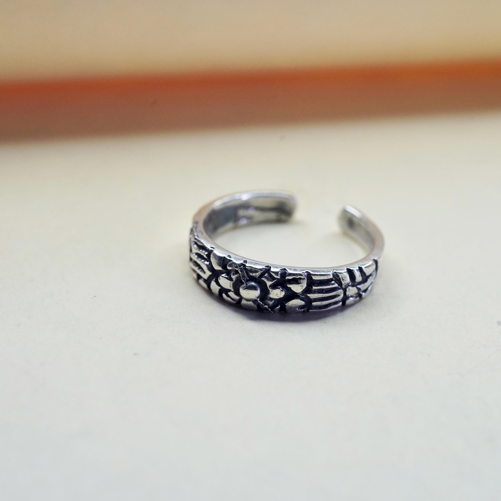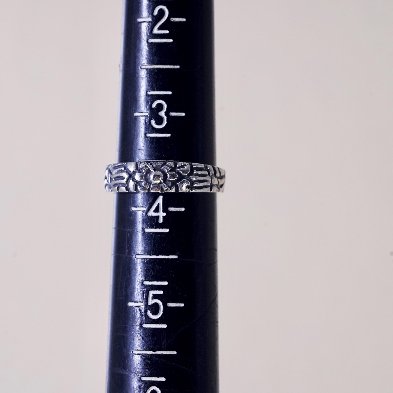 как выглядит Size 3.5, vintage Sterling silver handmade ring, 925 open band with flower фото