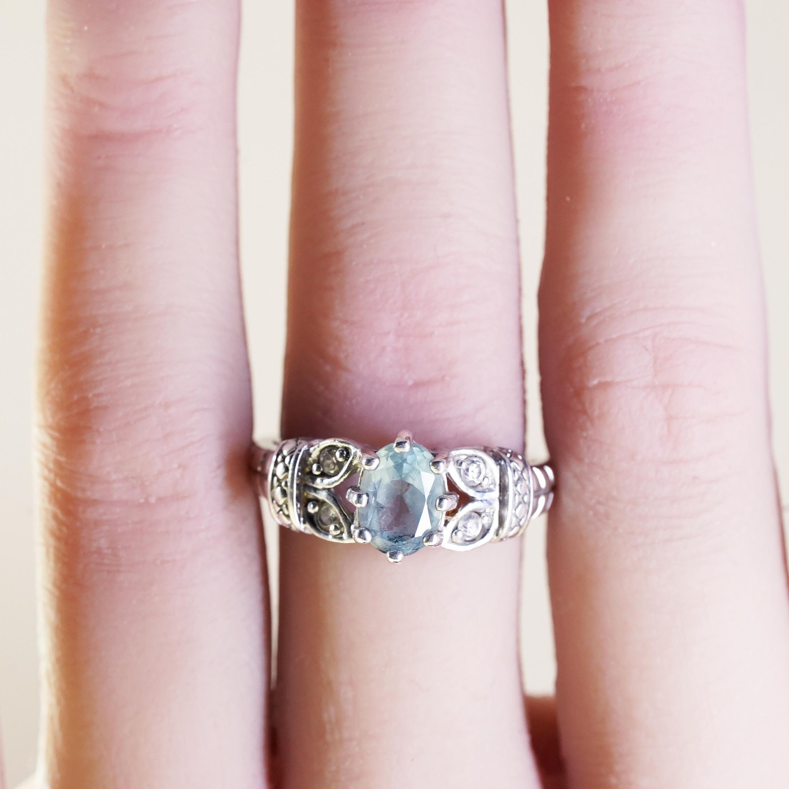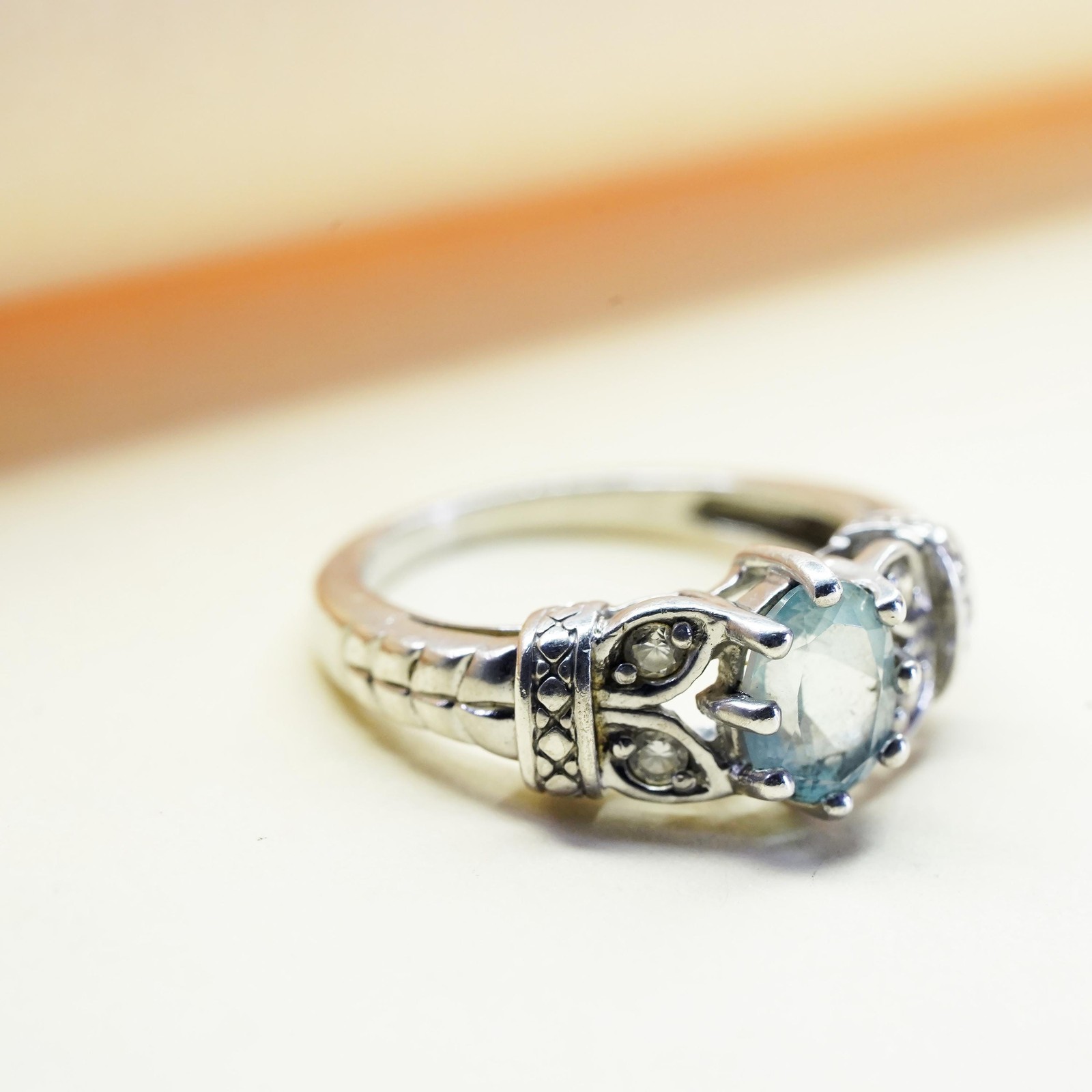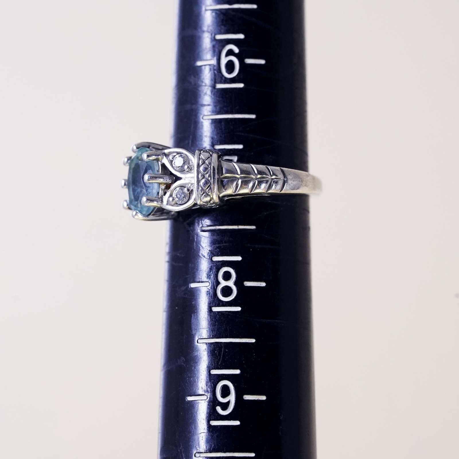 как выглядит Size 7, vintage sterling silver handmade ring, 925 with blue topaz and cz фото