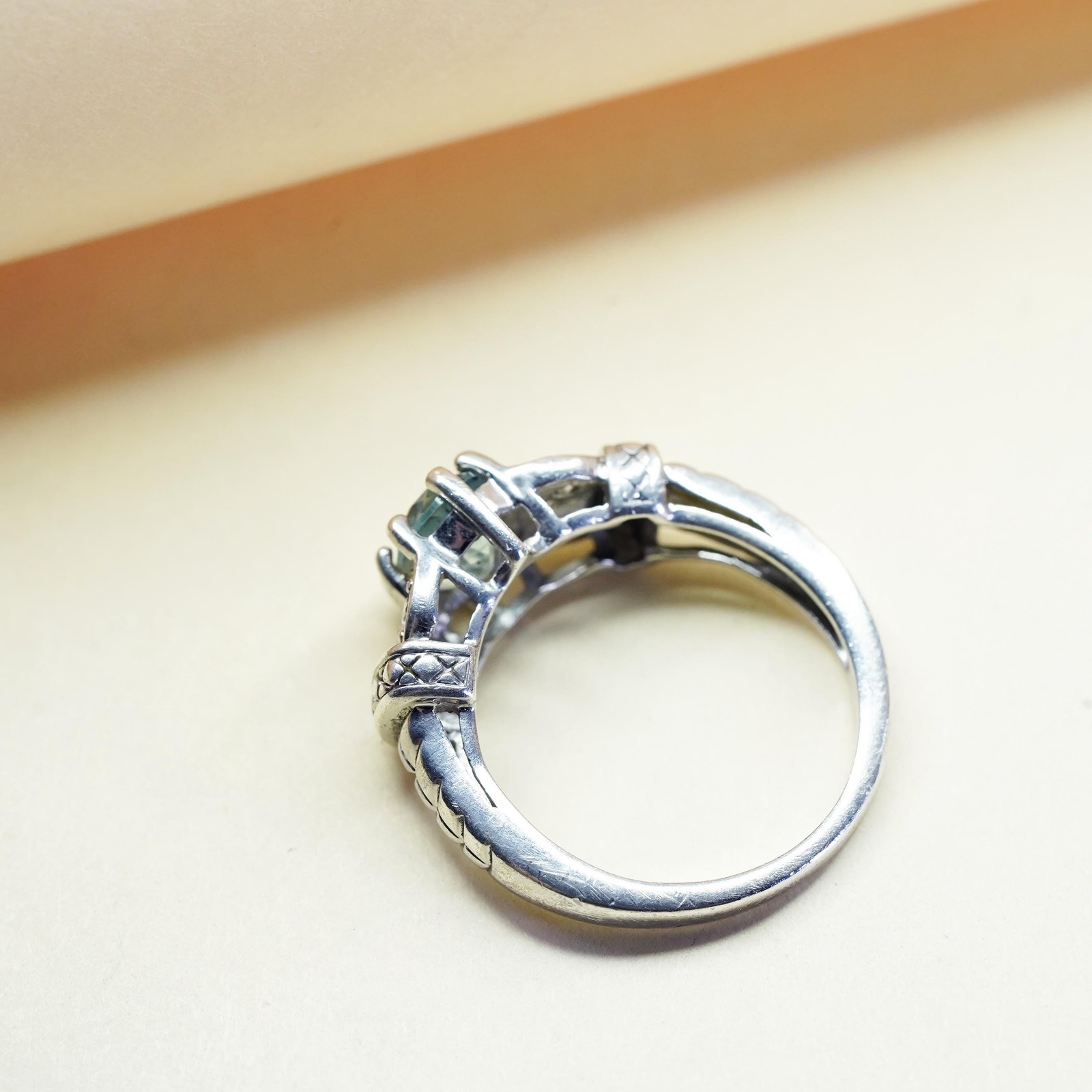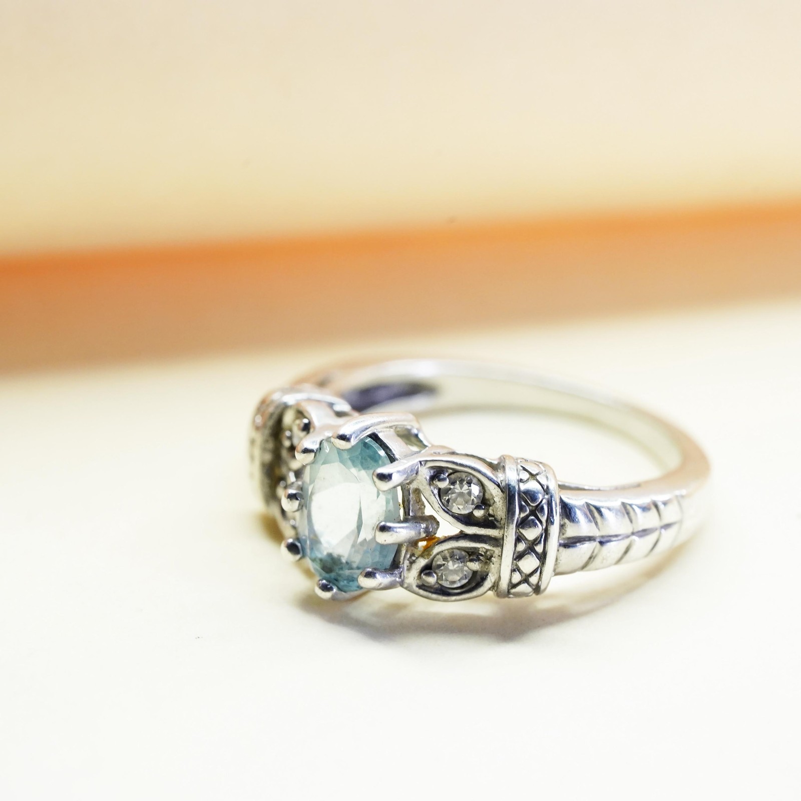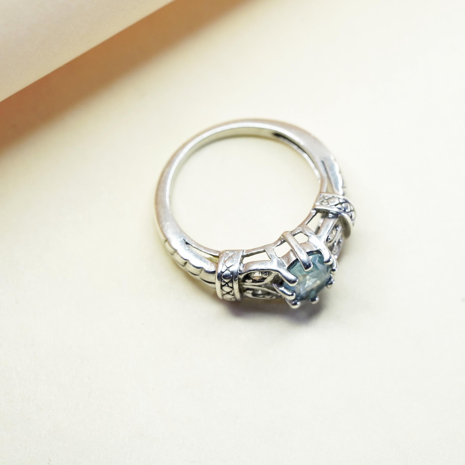 как выглядит Size 7, vintage sterling silver handmade ring, 925 with blue topaz and cz фото