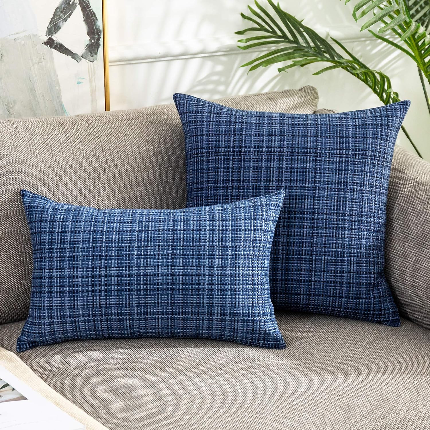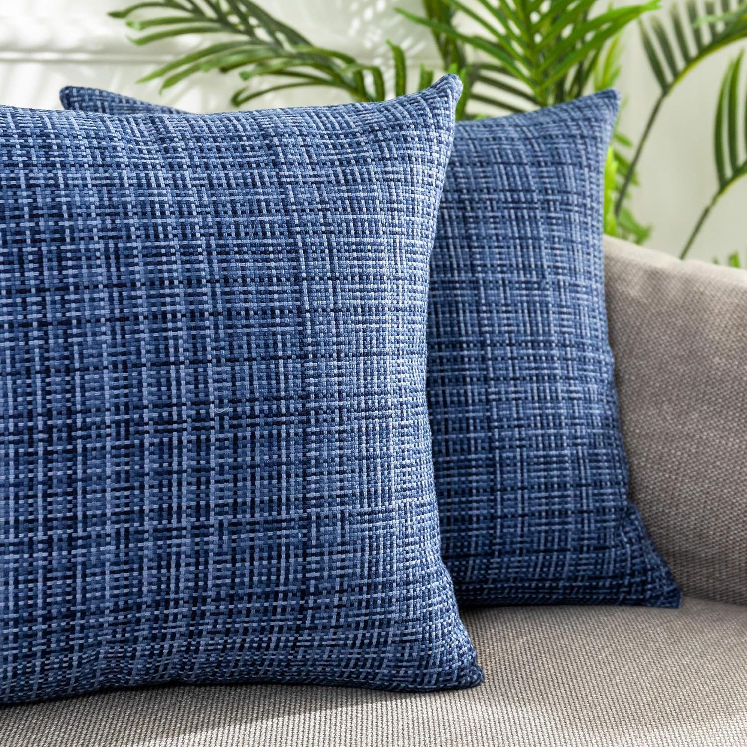 Pack of 2 Decorative Outdoor Waterproof Throw Pillow Covers Stripe Square Pillow