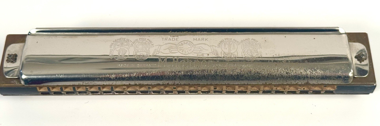 Linda's Mexicanas, M Hohner Chromonica Harmonica in the Key of A with box