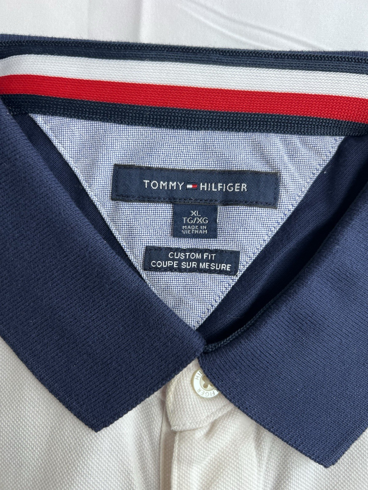 как выглядит Tommy Hilfiger Polo Shirt XL Custom Fit Colorblock Logo Mens Short Sleeve фото