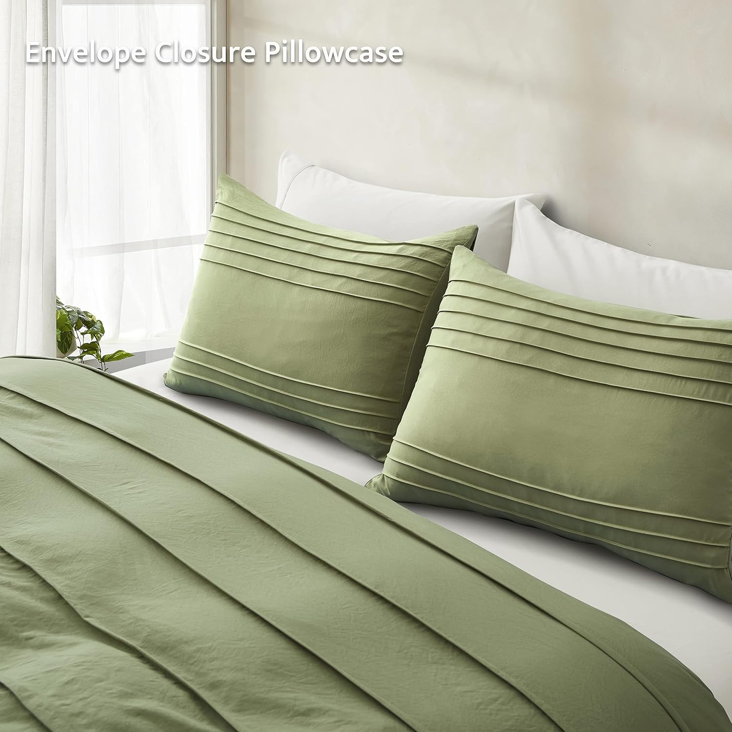 Sage Green Duvet Cover Queen Size - Pleated Queen Duvet Cover, 3PCS Soft and ...