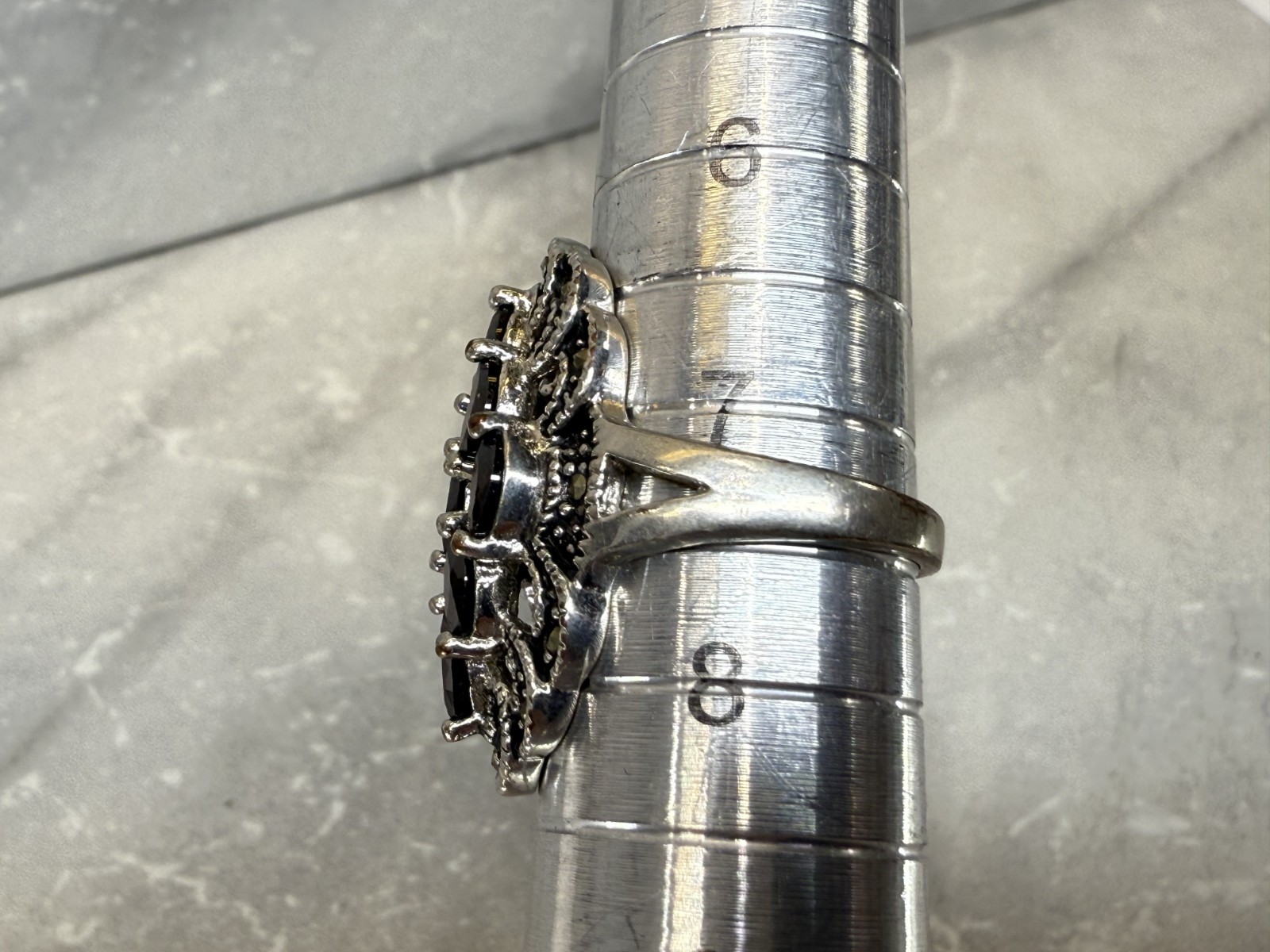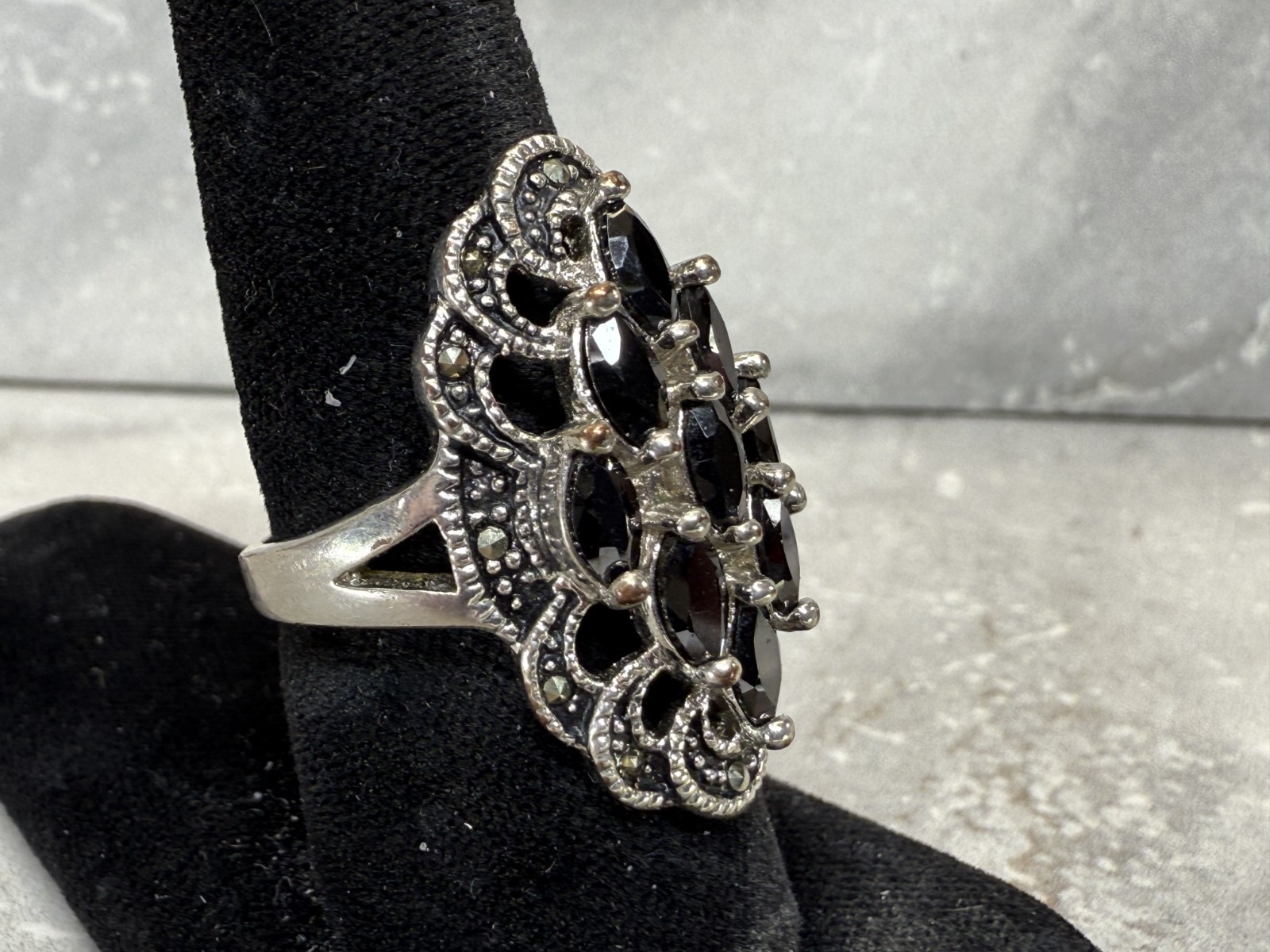 как выглядит Vintage Silver Tone Marquise Crystal Cluster Marcasite Accent Ring Size 7.5 фото