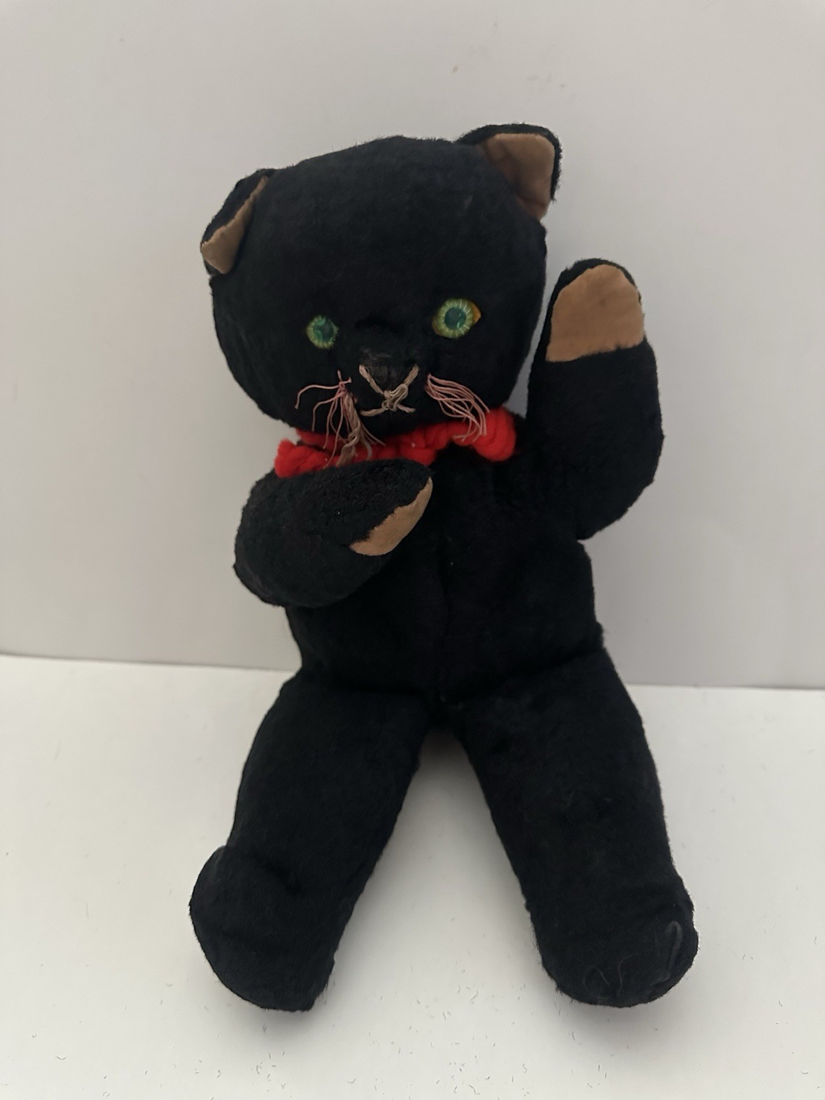 Antique Steiff Black Cat 13 1/2 long Jointed Faint tear at back seam No tags