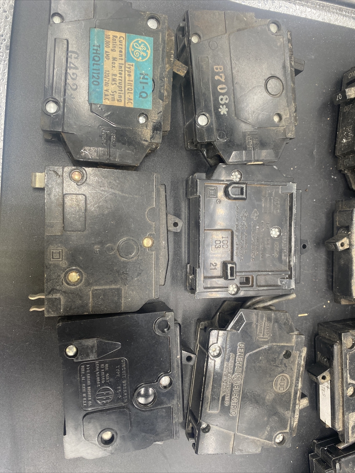 как выглядит Lot Of 19 Used Circuit Breakers Square D Simens GE Bryant ITE Single Dual Pull фото