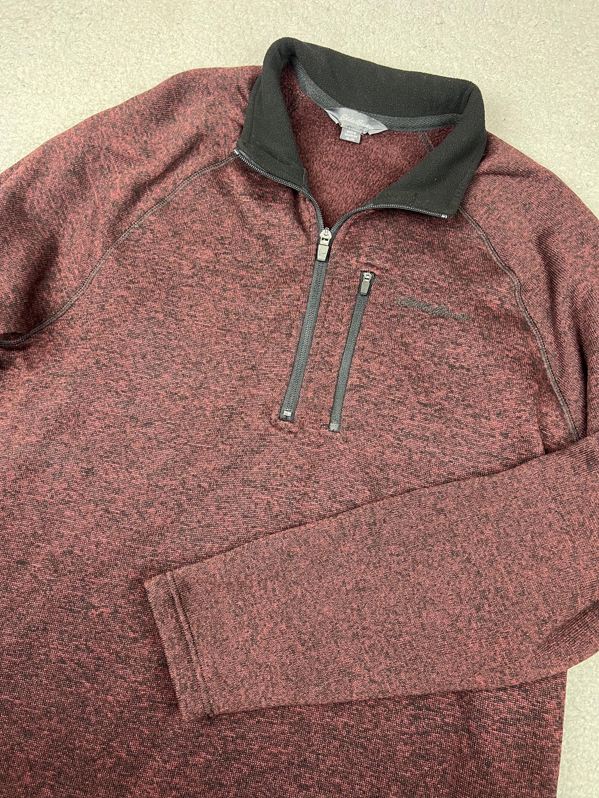 Eddie Bauer Sweater Mens XL Red Heather 1/4 Zip Fleece Pullover Mock Neck