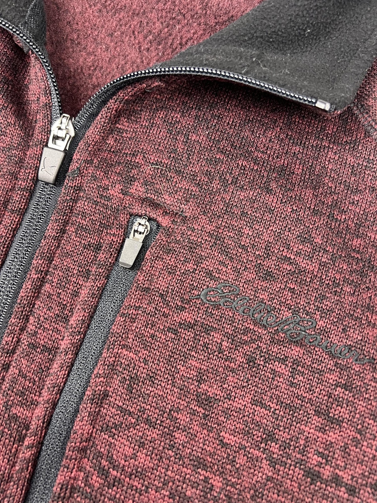 как выглядит Eddie Bauer Sweater Mens XL Red Heather 1/4 Zip Fleece Pullover Mock Neck фото
