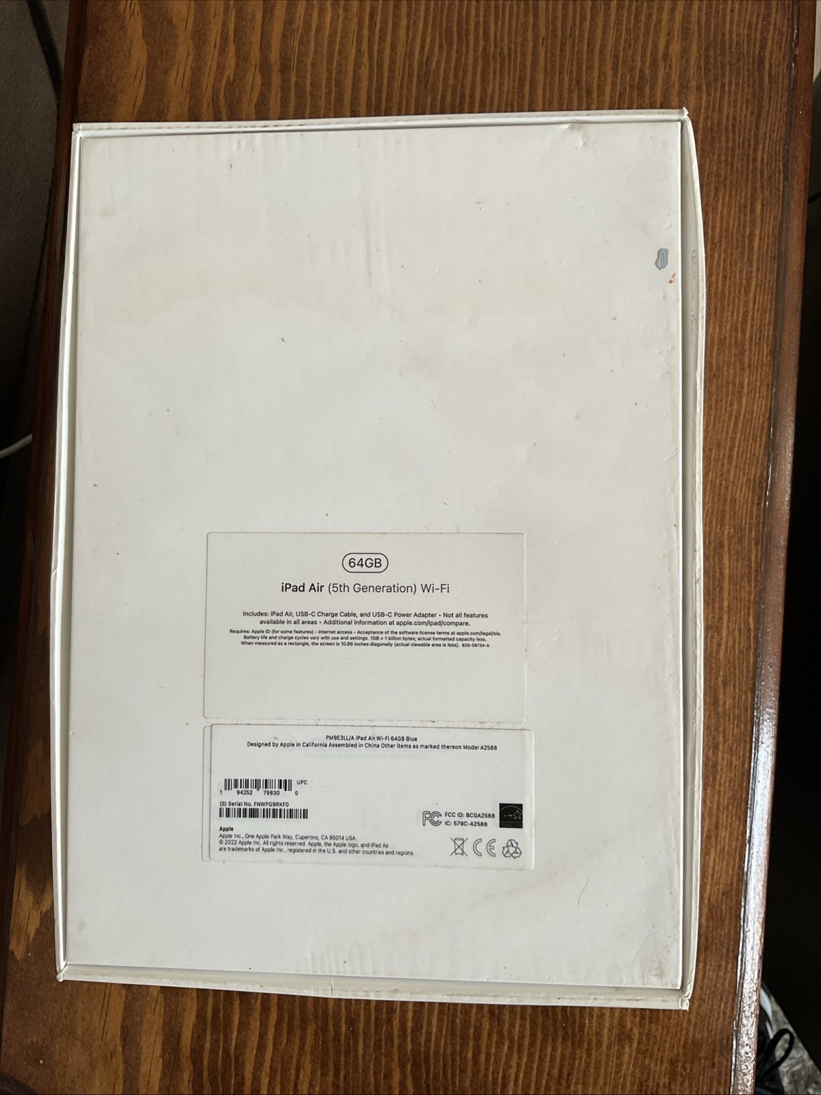 EMPTY BOX ONLY iPad Air 5th Generation Wi Fi 64 GB BLUE MODEL A2588