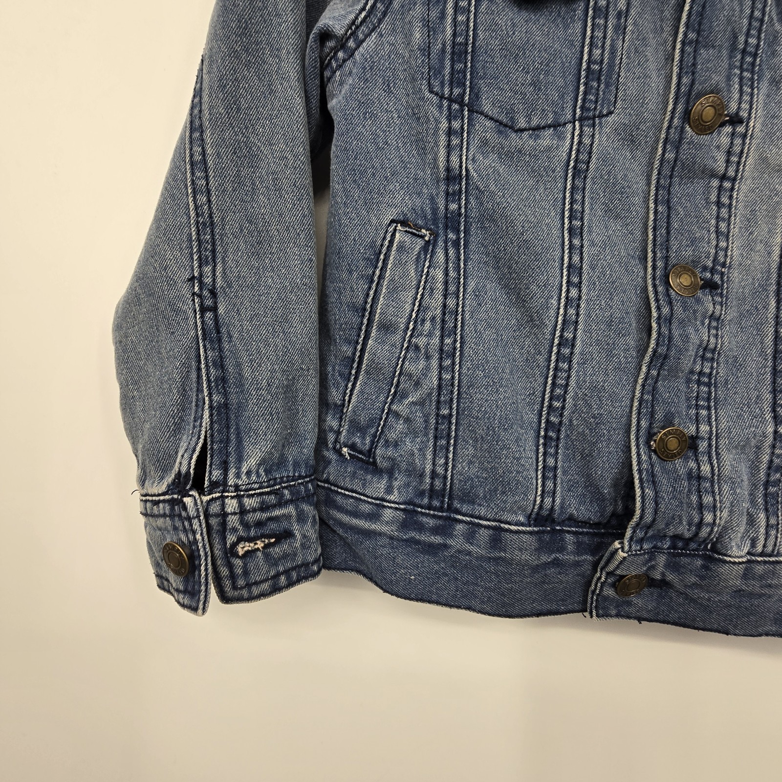 Sears Simply Styled Denim Jacket Kids SM 8 Sherpa Collar Trucker Coat Western