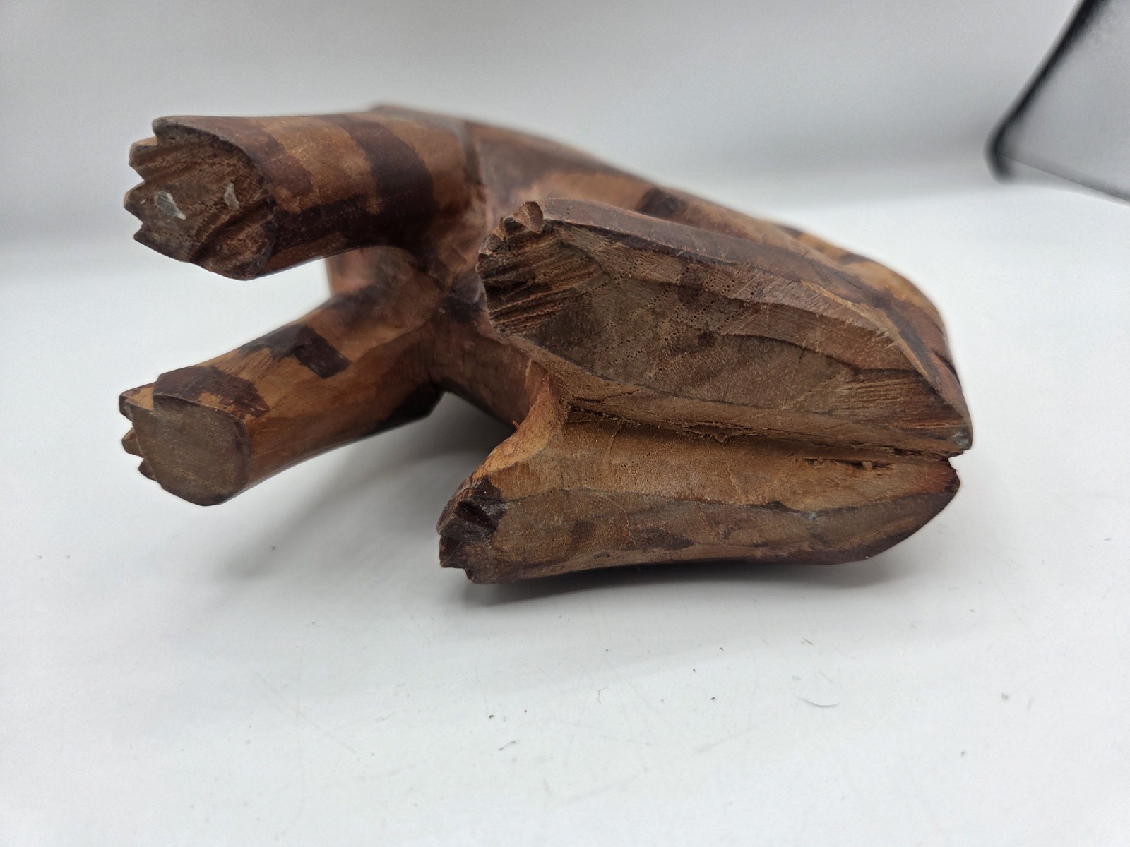 как выглядит Hand Carved Wooden Cat Figurine Striped Minimalist Folk Art Home Decor 7" X 5" фото