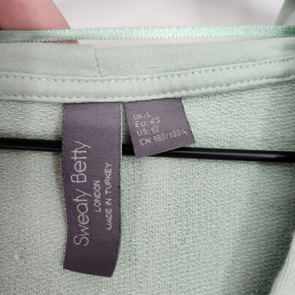как выглядит Sweaty Betty Light Sage Cropped Hoodie Womens Large Athleisure Activewear Yoga фото